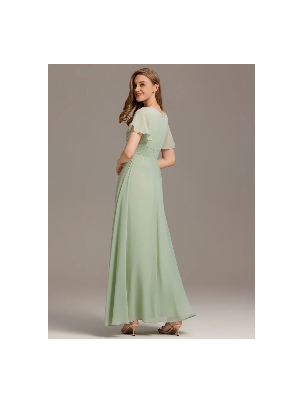 Jednoduché společenské dlouhé šaty na svatbu i večírek. Volné rukávy , kulatý vystřih, krásné jemné řasení. šaty se zapínám vzadu na zip.