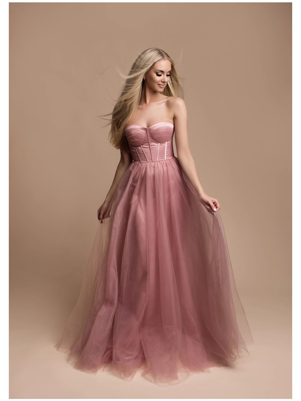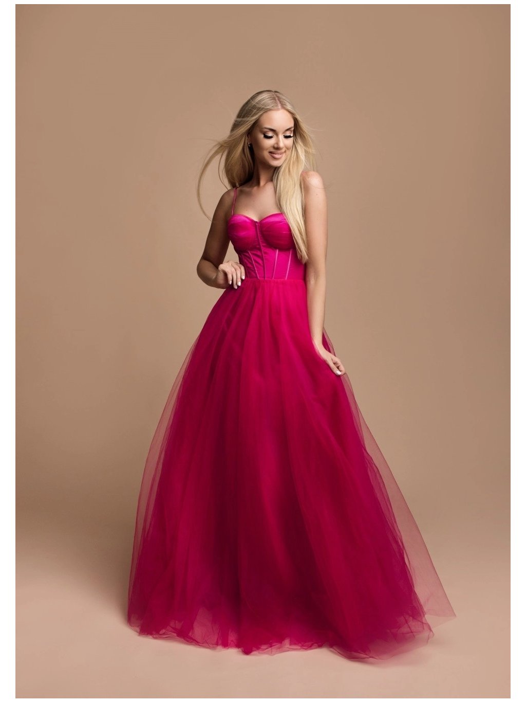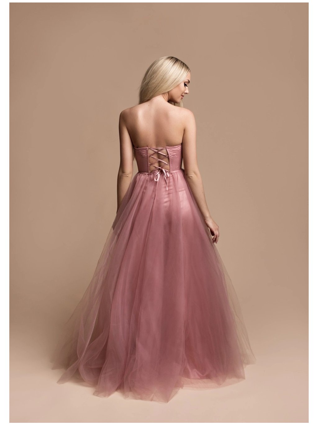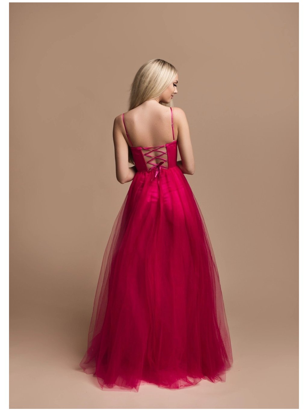 Stylové šaty společenské hladký saténový korzet, tylová sukně špagetová ramínka,vzadu na šněrování