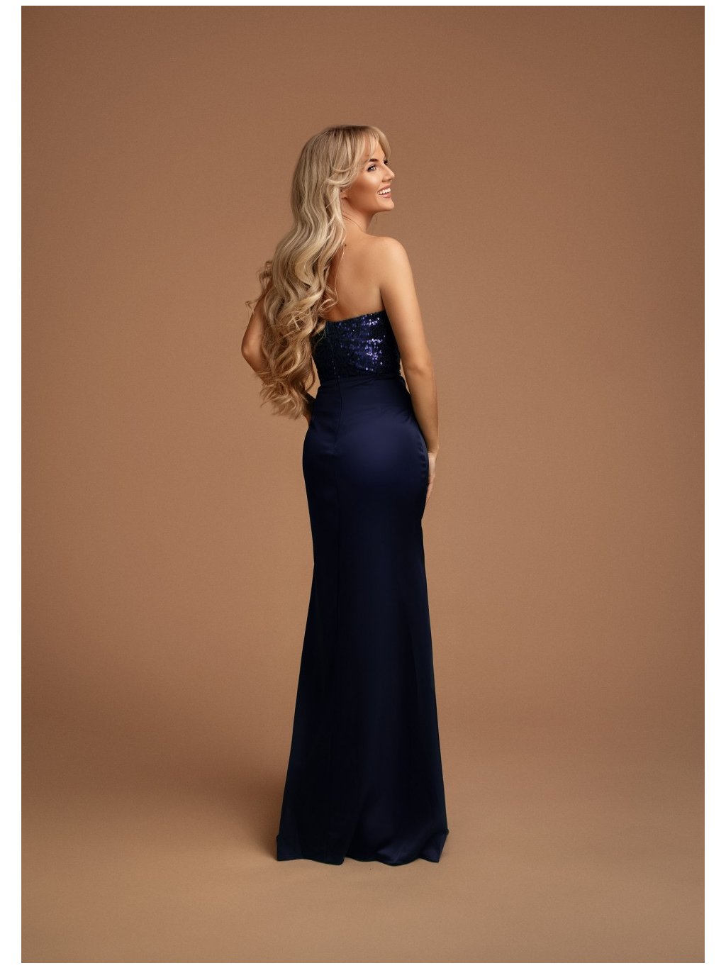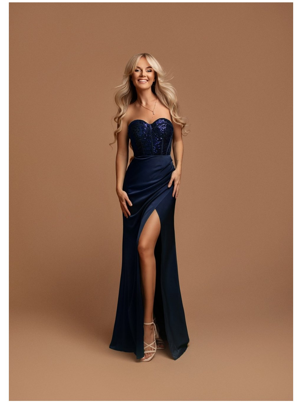 Stylové šaty společenské hladké dlouhé,bez rukávů,korzet s flitry ,s rozparkem.