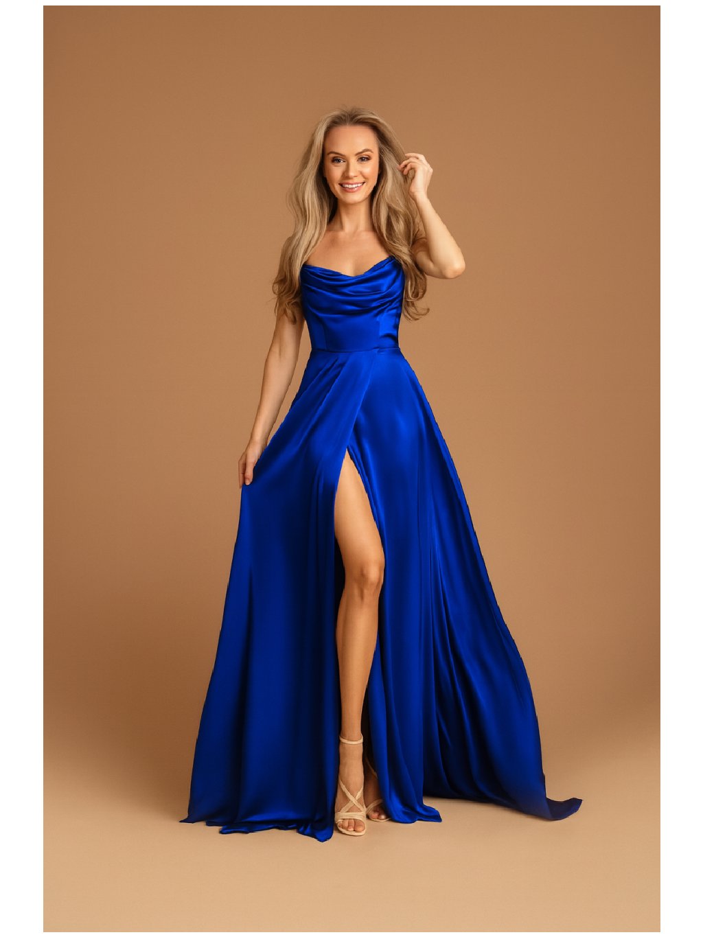 Stylové šaty společenské saténové dlouhé,bez rukávů,vzadu na šněrování ,