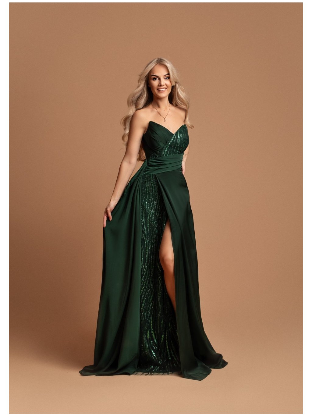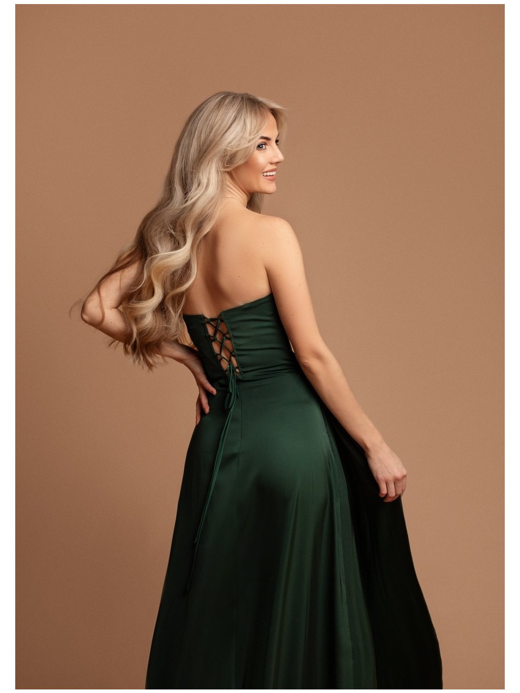 Stylové šaty společenské hladký vzhled, se zajímavým průstřihem, vysokým rozparkem. Střih korzetový vzadu na šněrování