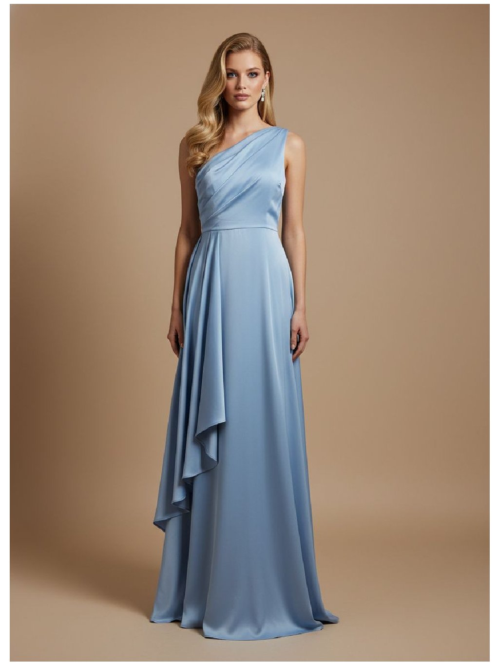 Jemně splývavým živůtkem, který obepíná siluetu, a definovaným pasem, který se otevírá do splývavé sukně s měkkým pádem až na zem, zdobené překrývajícím se panelem, který dodává svobodu.