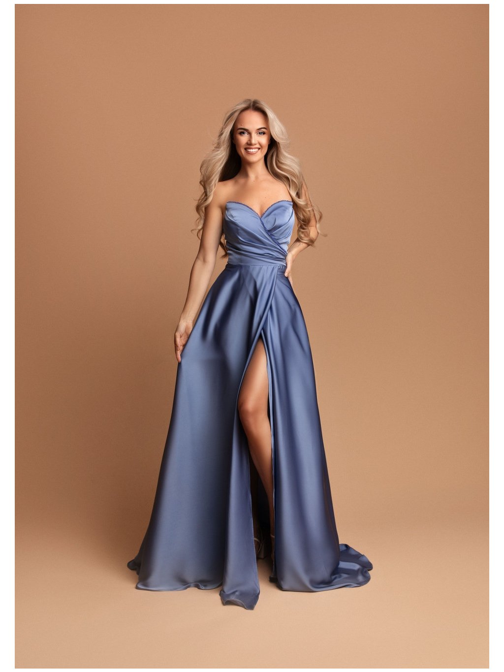 Stylové šaty společenské hladké dlouhé,bez rukávů,vzadu na šněrování ,s rozparkem.