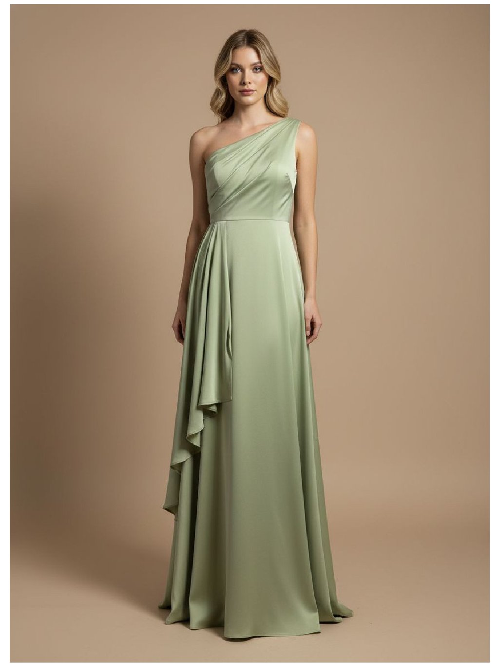 Jemně splývavým živůtkem, který obepíná siluetu, a definovaným pasem, který se otevírá do splývavé sukně s měkkým pádem až na zem, zdobené překrývajícím se panelem, který dodává svobodu.