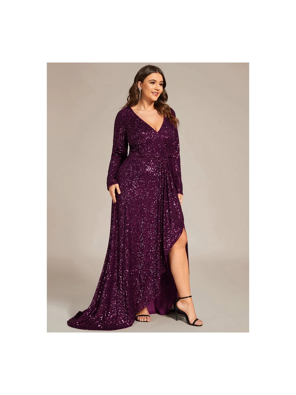 Úchvatné plesové flitrové šaty Ever Pretty. Šaty mají dlouhé rukávy. Na prsou véčkový výstřih. Sukně má rozparek.