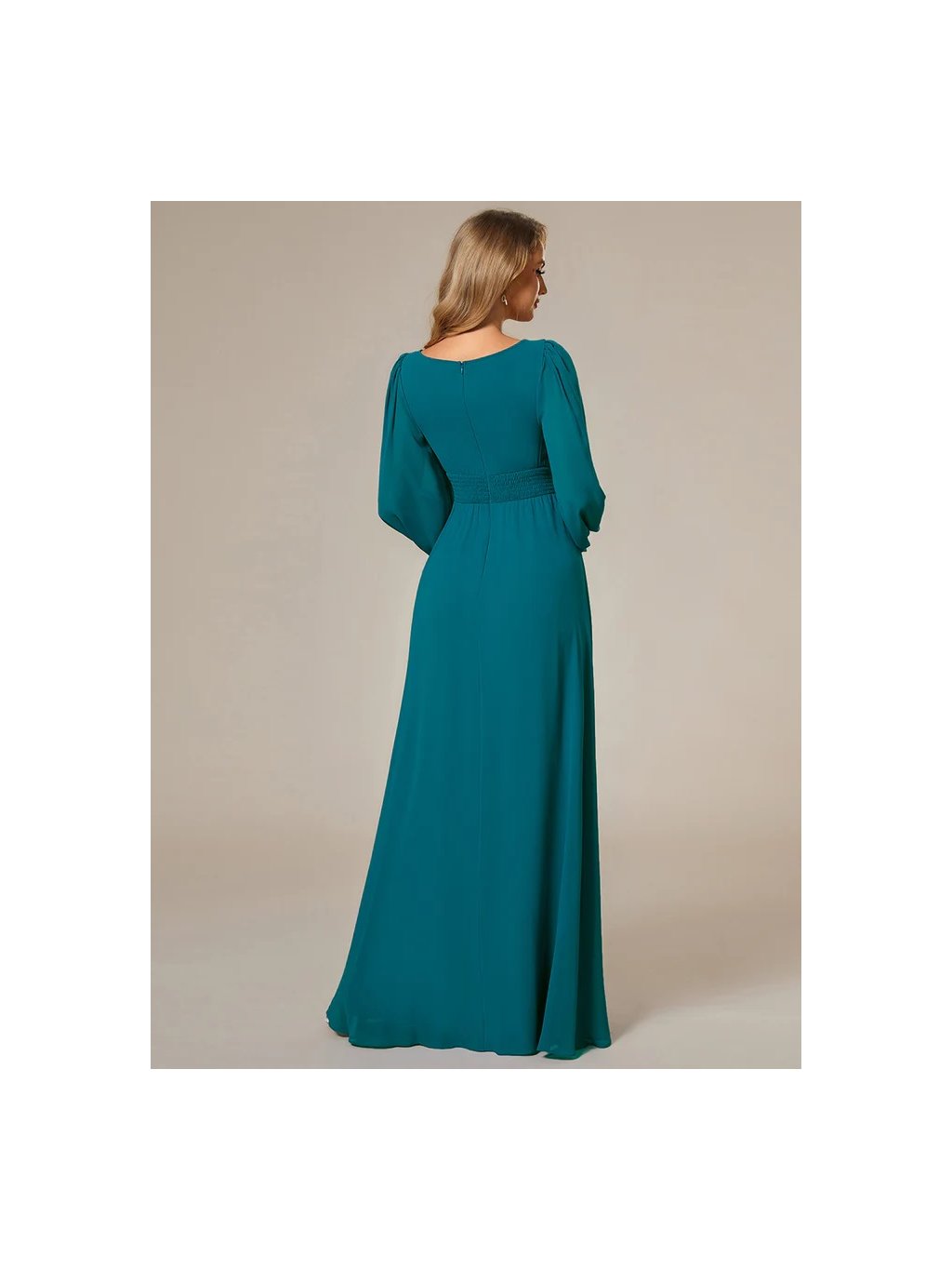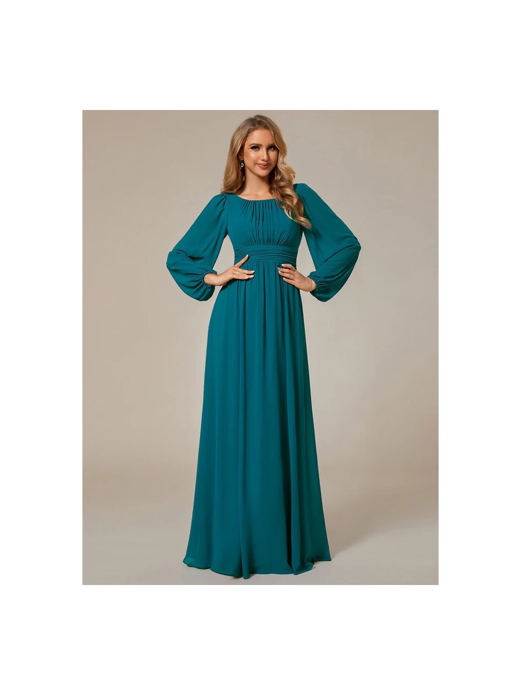 Jednoduše střižené plesové šaty Ever Pretty. Šaty mají dlouhé rukávy. Na prsou kulatý výstřih.