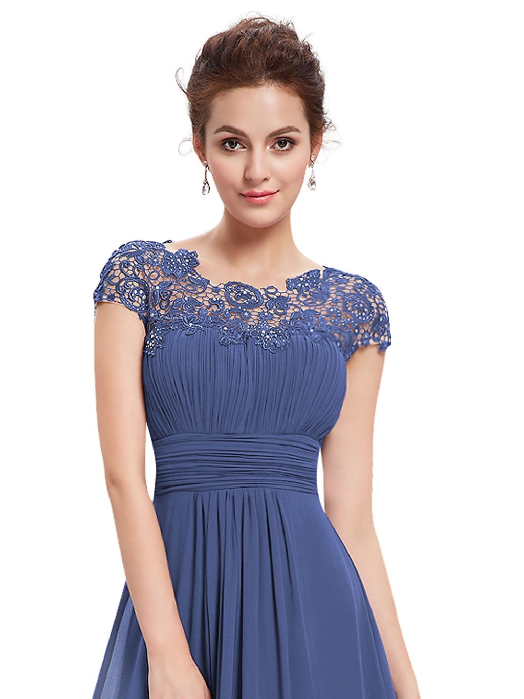 Luxusní šaty na ples, vhodné i do tanečních. Šaty mají vrchní díl zdobený krajkou s kamínky. Na zádech je výkroj. Šatičky mají krátký rukávek. Jsou z velmi příjemného a lehkého materiálu.