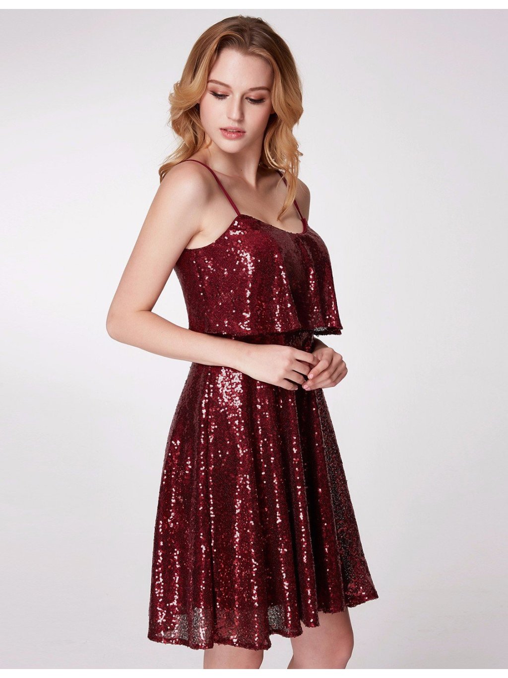 Luxusní krátké šaty Ever Pretty. Šatičky jsou na špagetová ramínka, jsou celé pošité flitry. Vrchní díl je přes prsa volný.