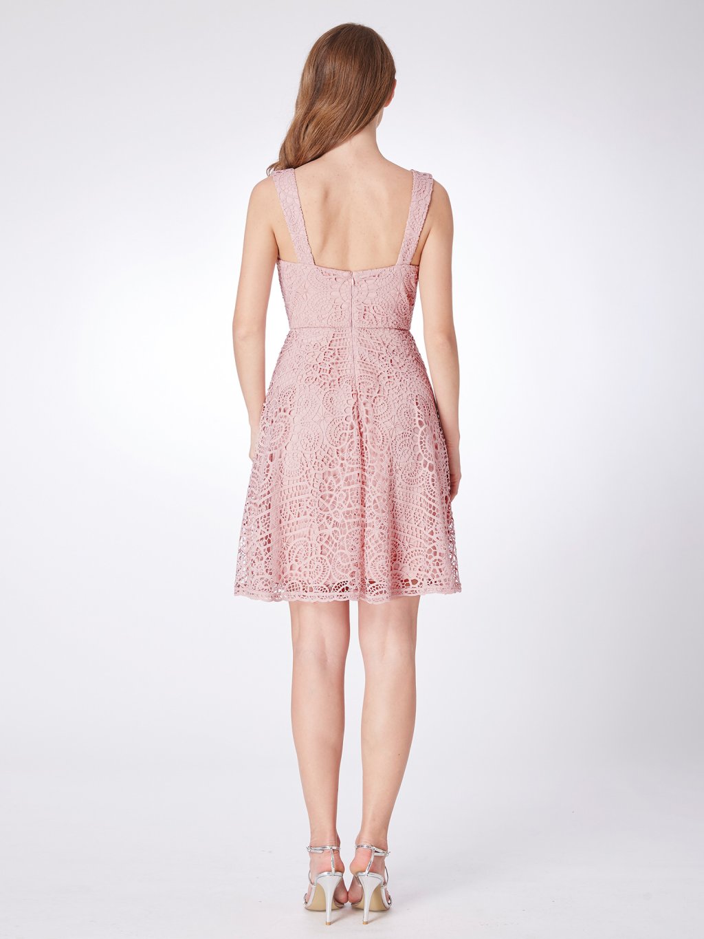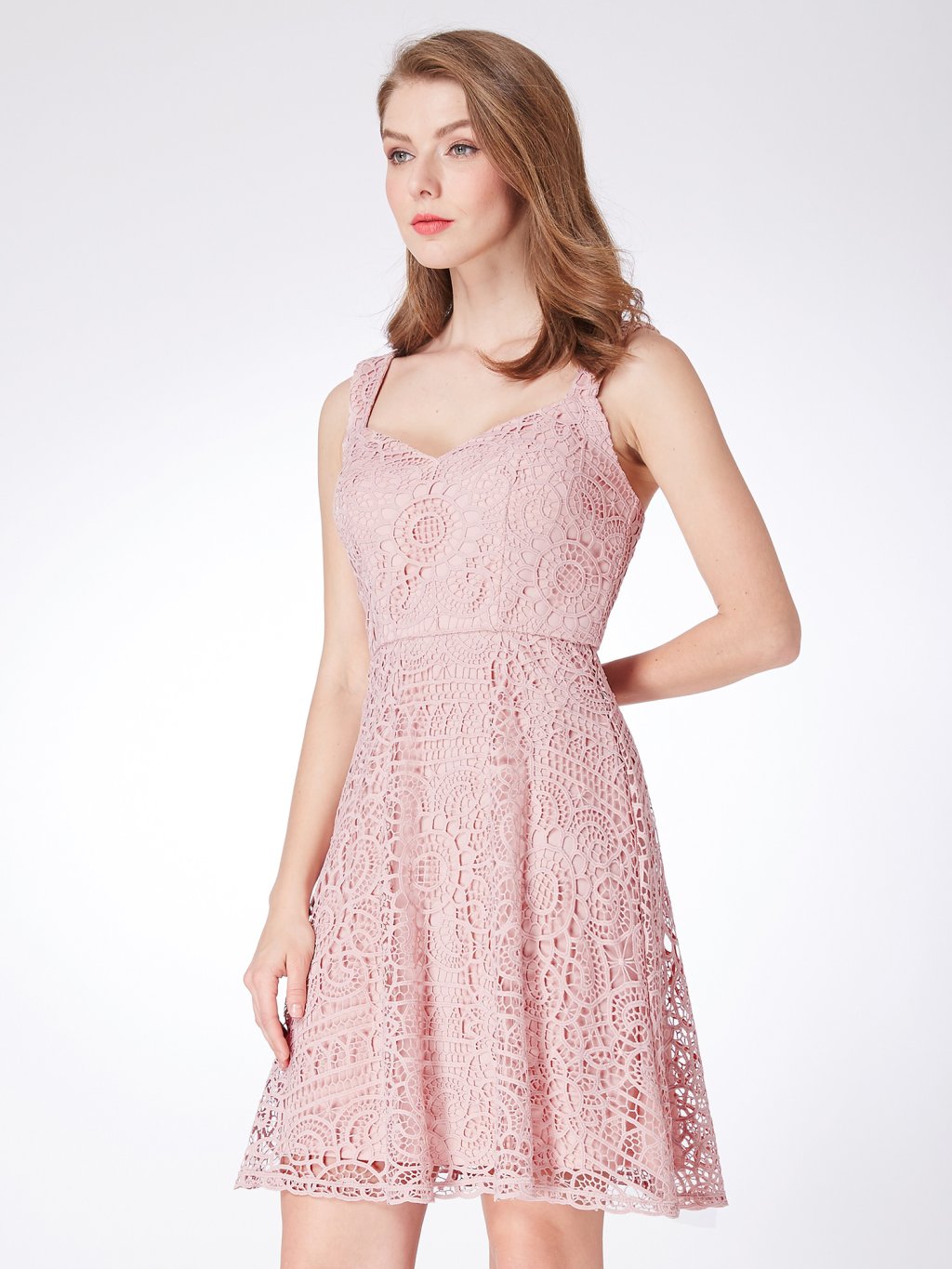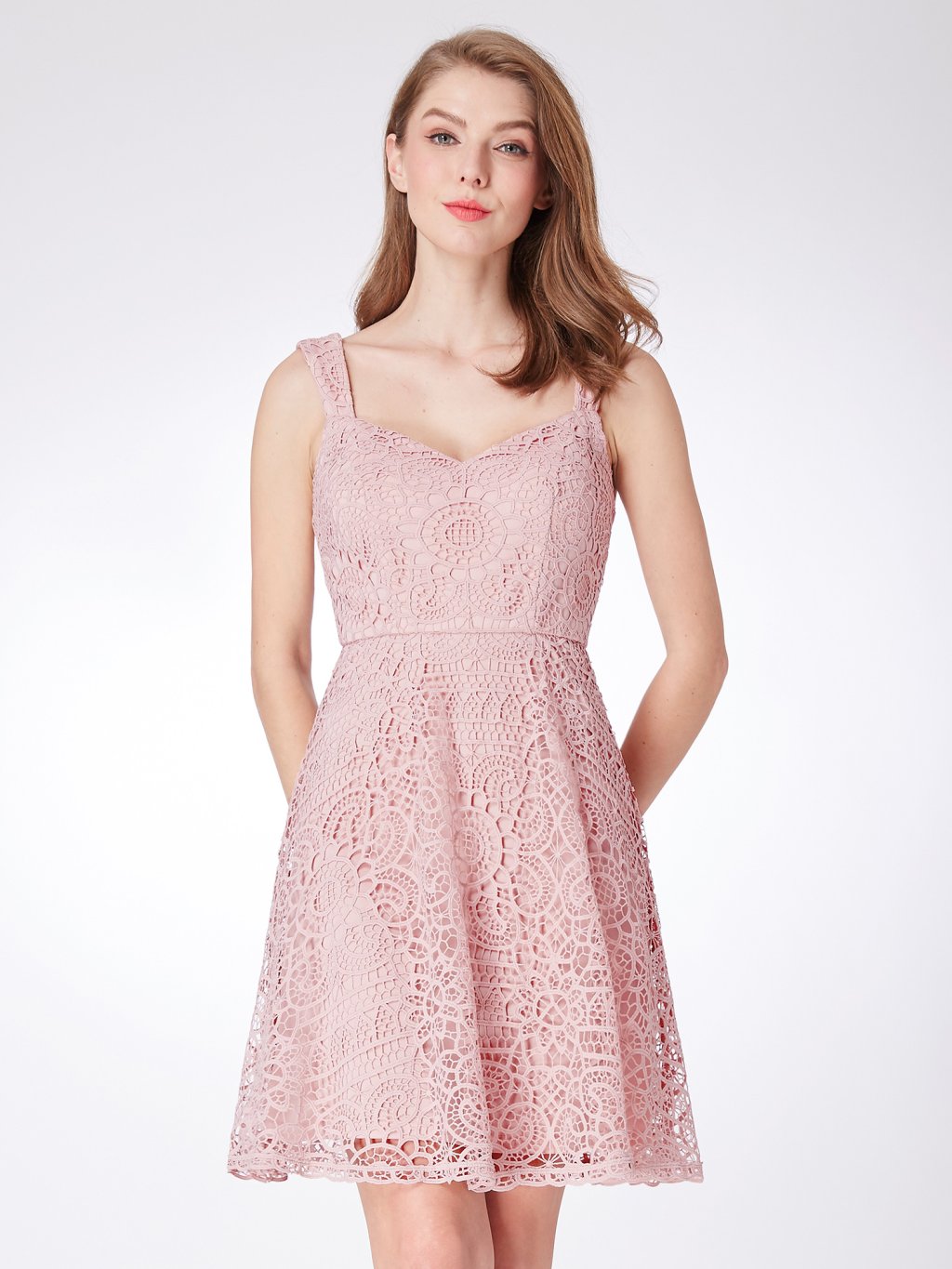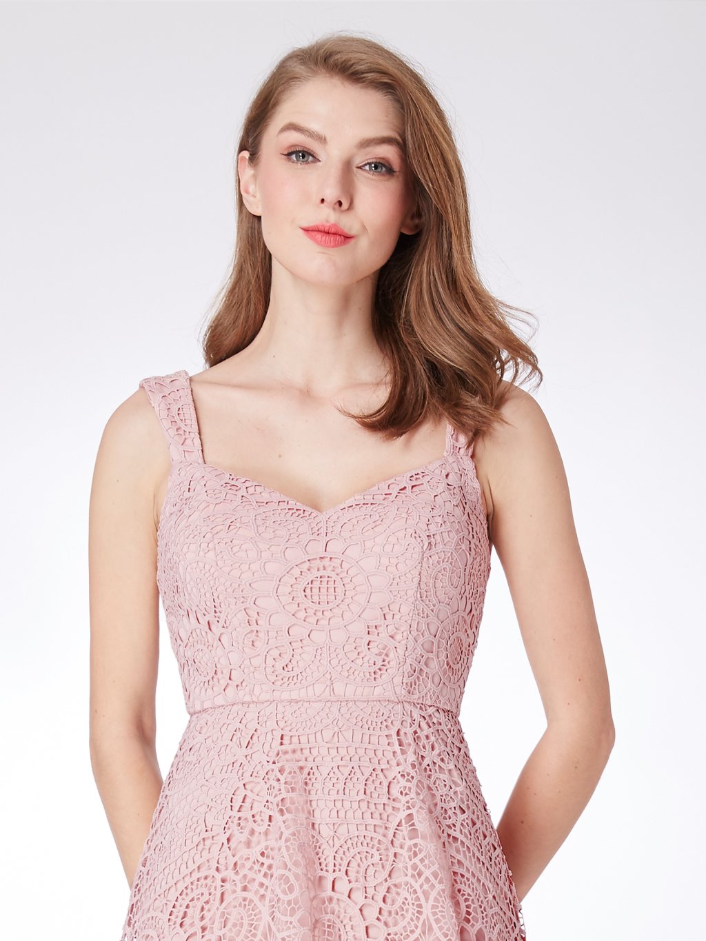 Luxusní růžové šaty Ever Pretty. Šaty jsou na široká ramínka, véčkový výstřih. Jsou celokrajkové. Spodní látka je stejné barvy. Na zádech mají skrytý zip.