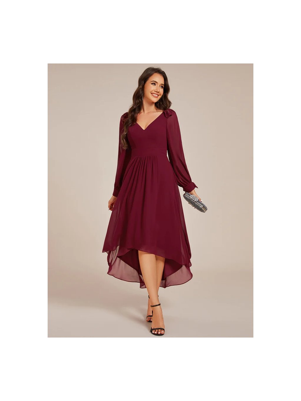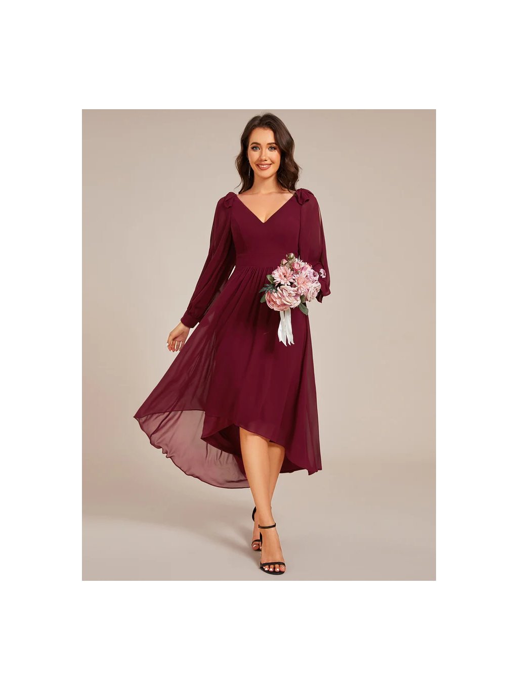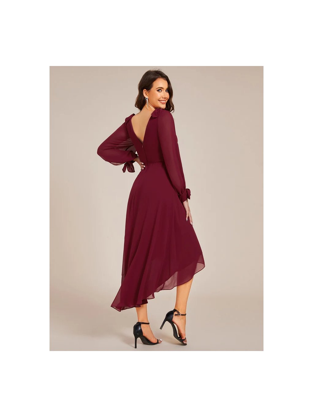 Úchvatné krátké plesové šaty Ever Pretty. Šaty mají dlouhé prostřižené rukávy. Na prsou véčkový výstřih. Na zádech taky výstřih do v