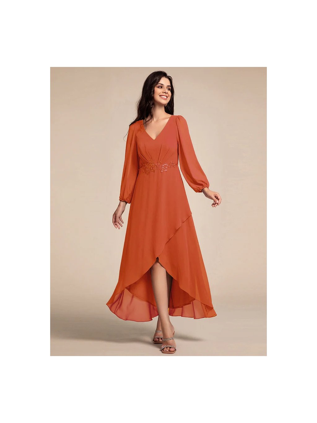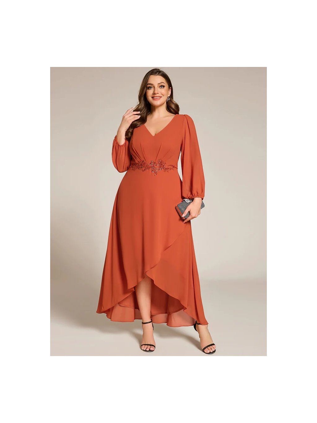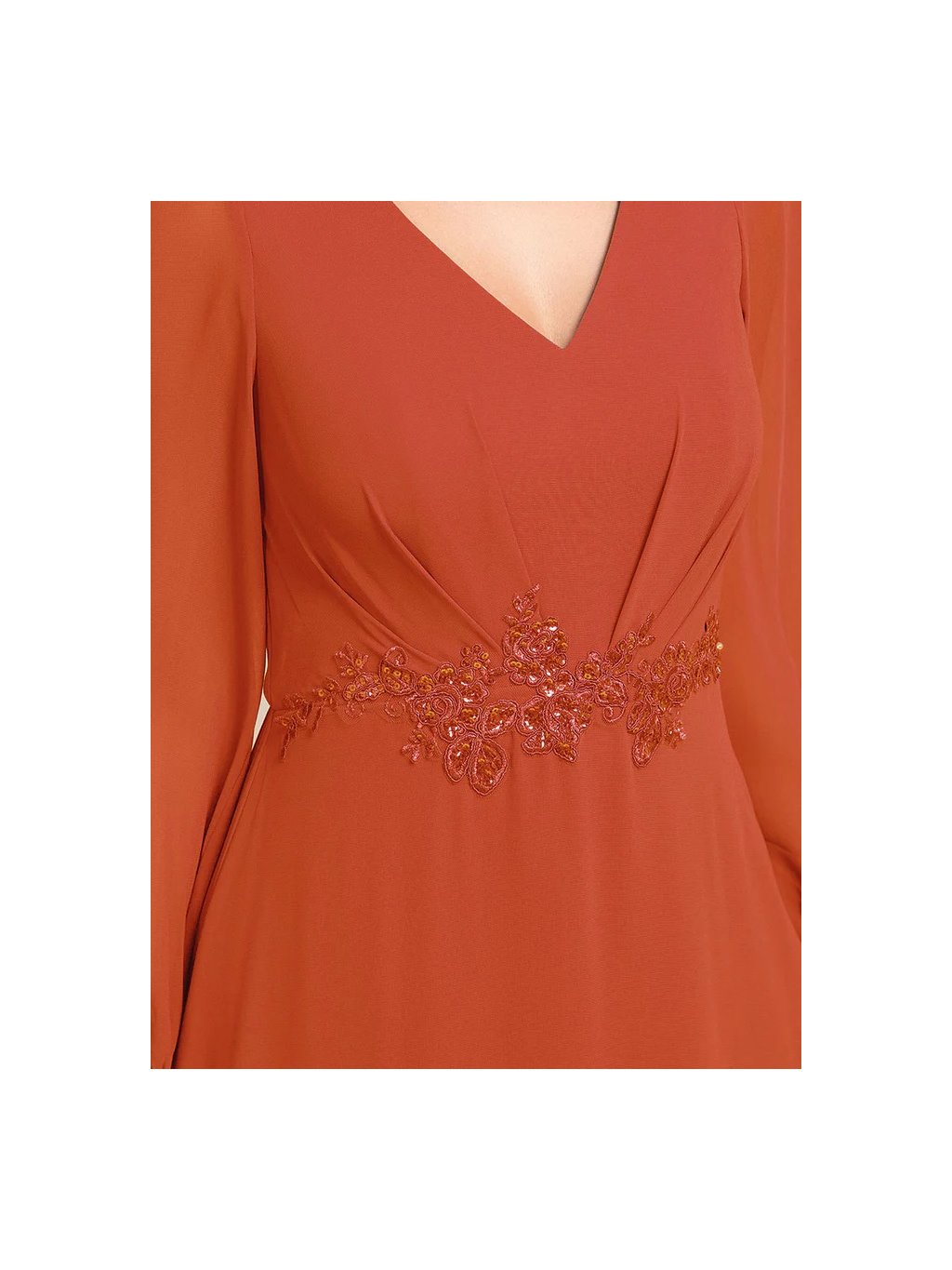 Úchvatné plesové šaty Ever Pretty. Šaty mají dlouhé rukávy. Na prsou mají véčkový výstřih.