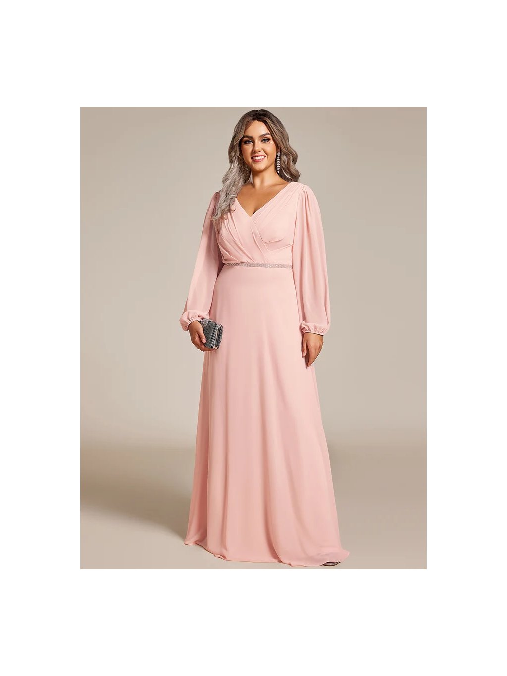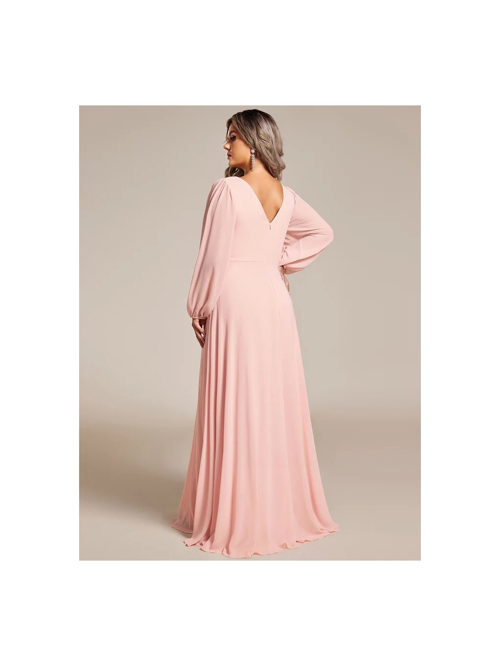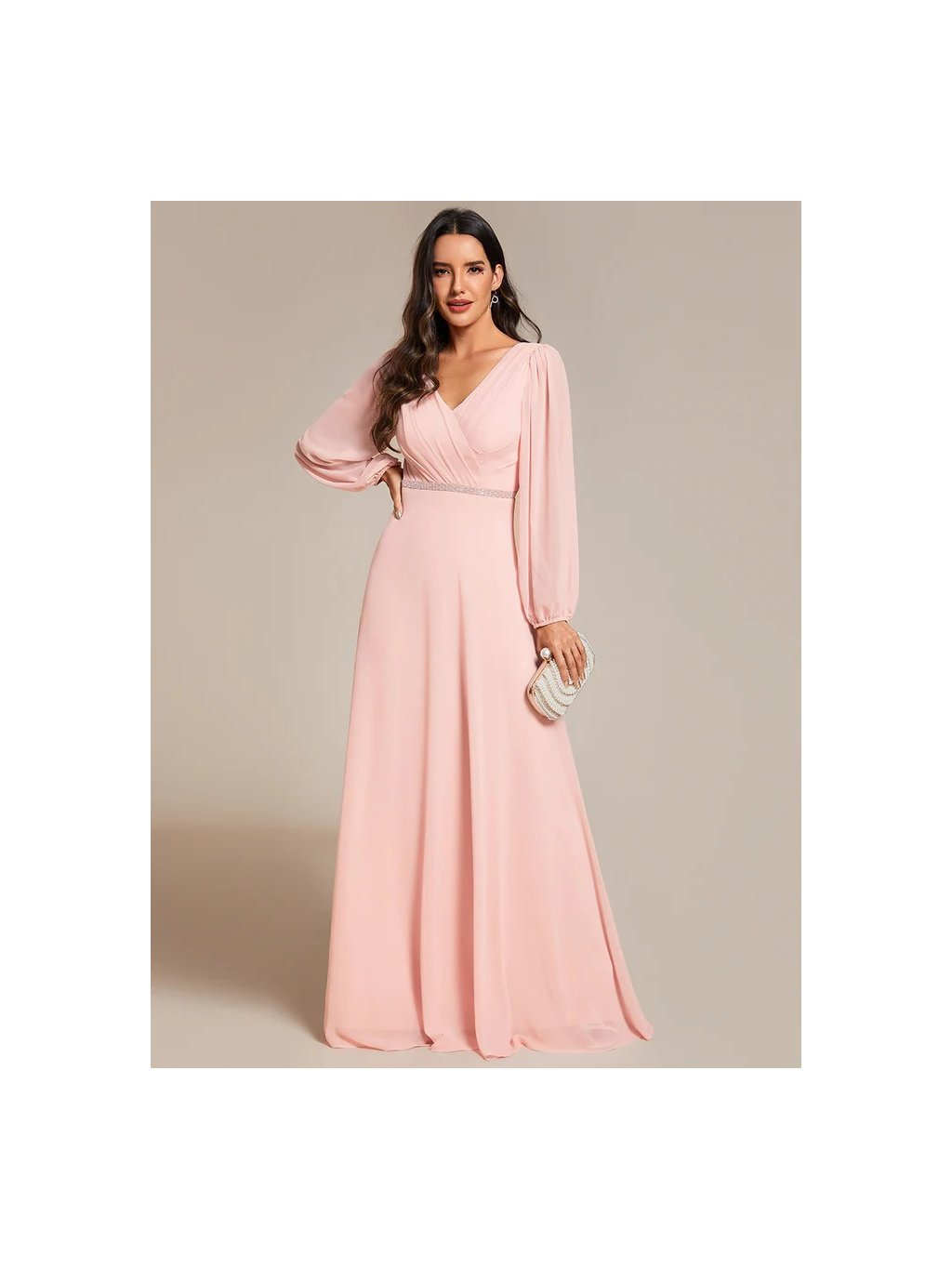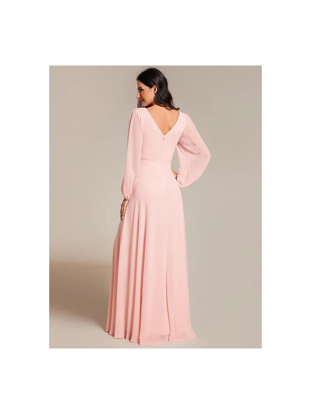 Jednodušše střižené společenské šaty Ever Pretty. Šaty mají dlouhé rukávy. Na prsou véčkový výstřih.
