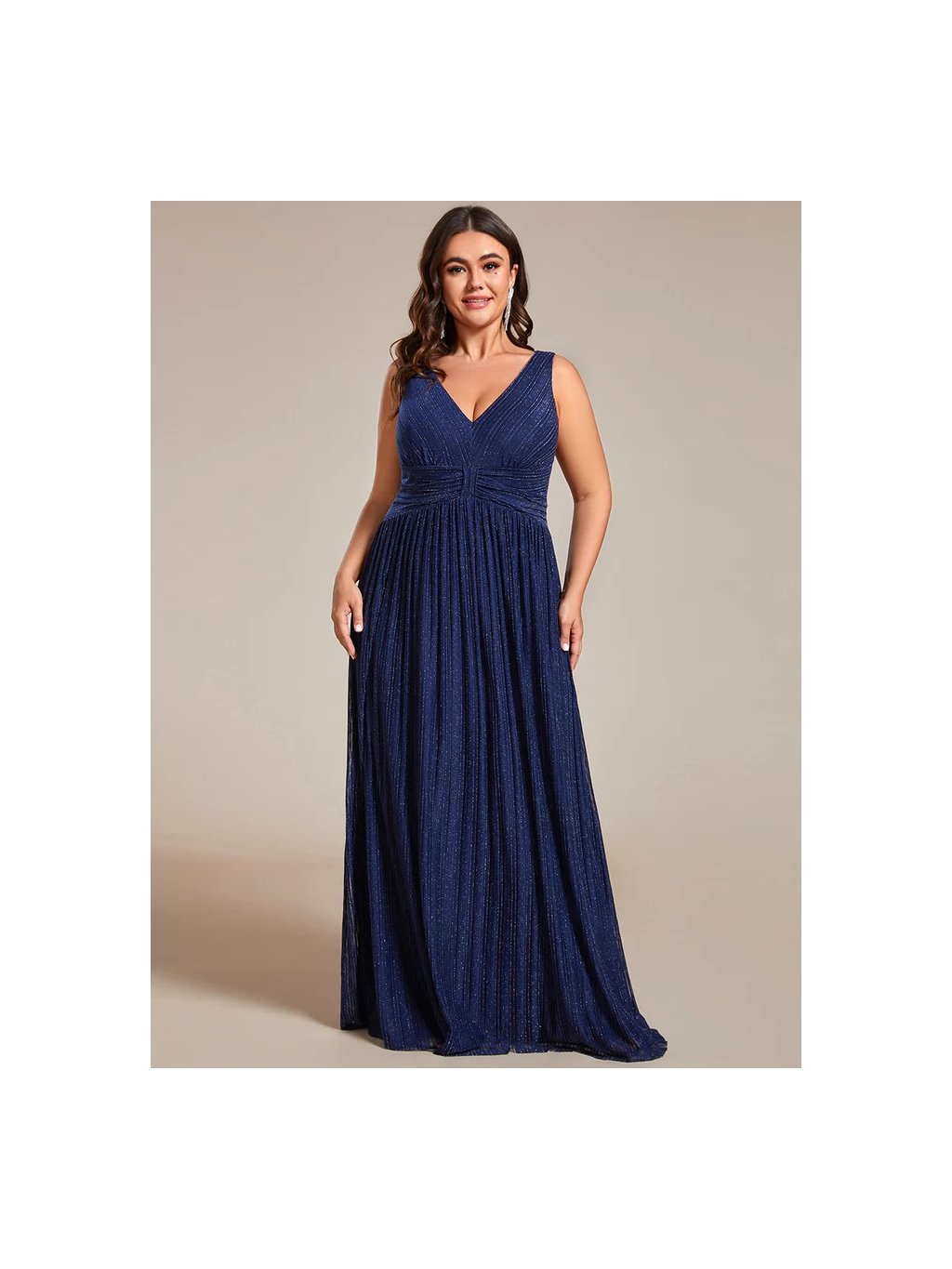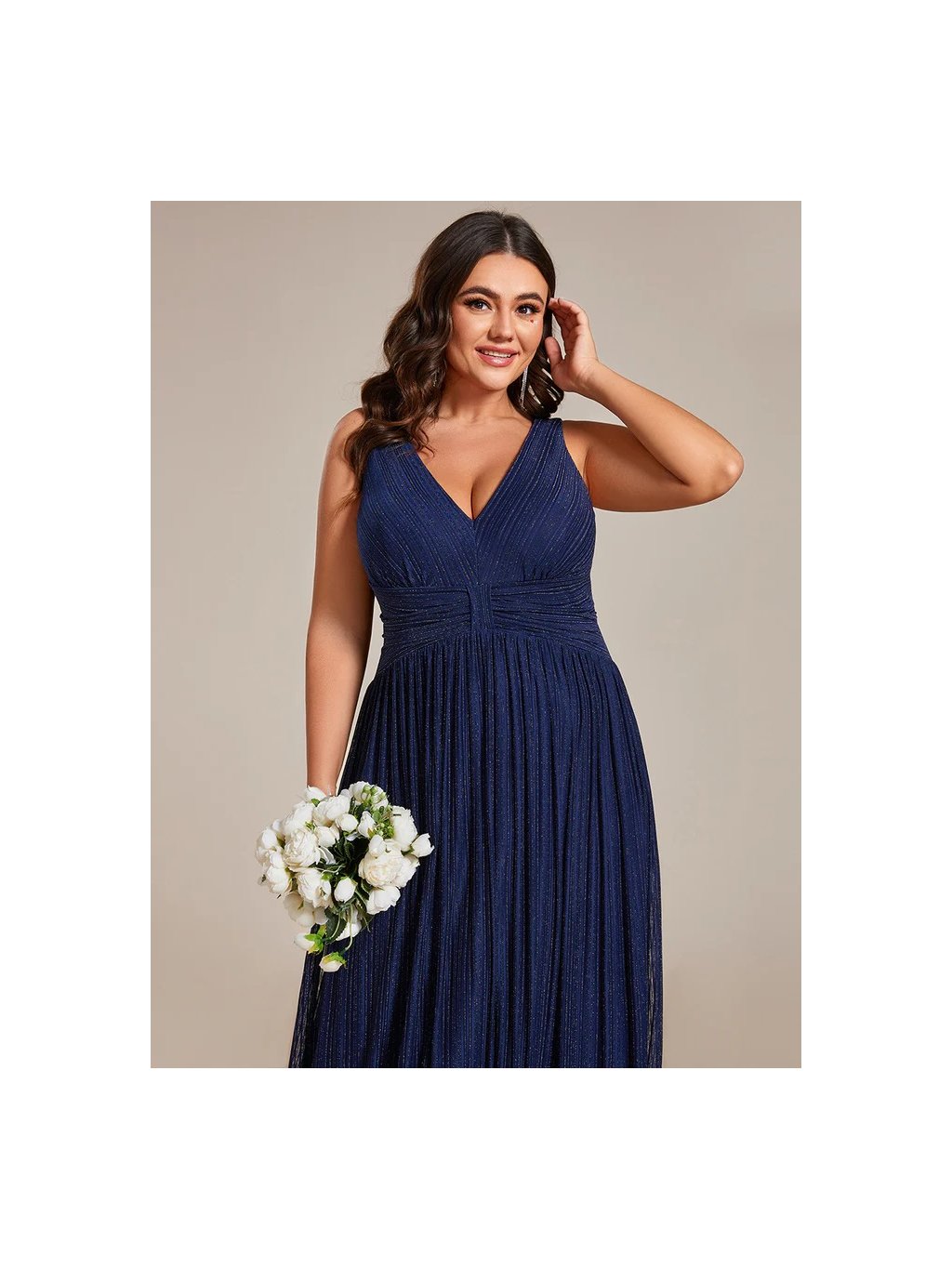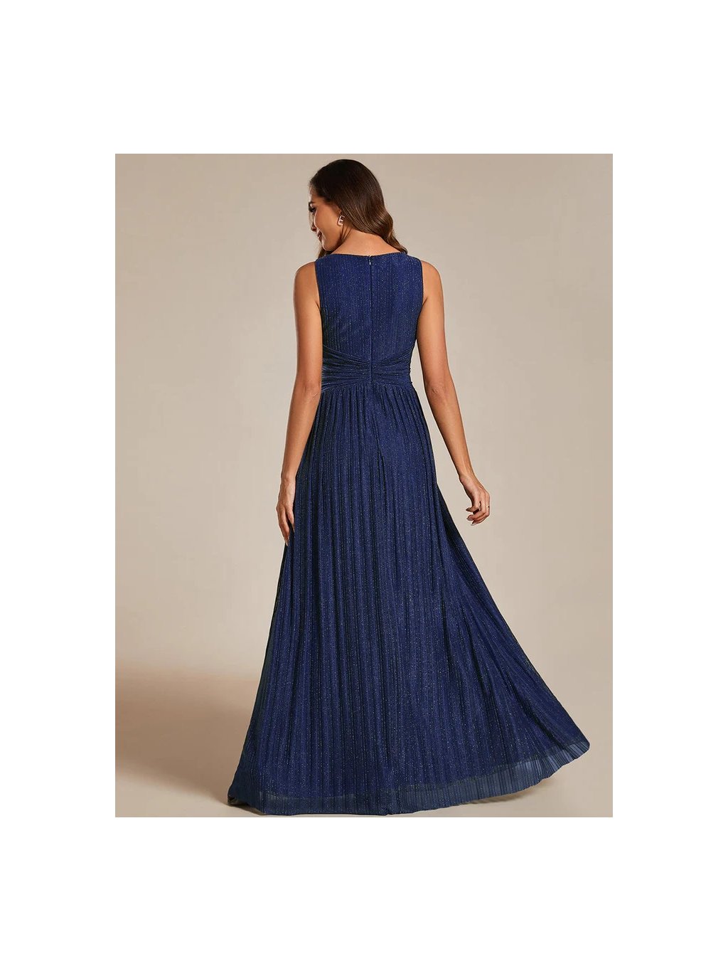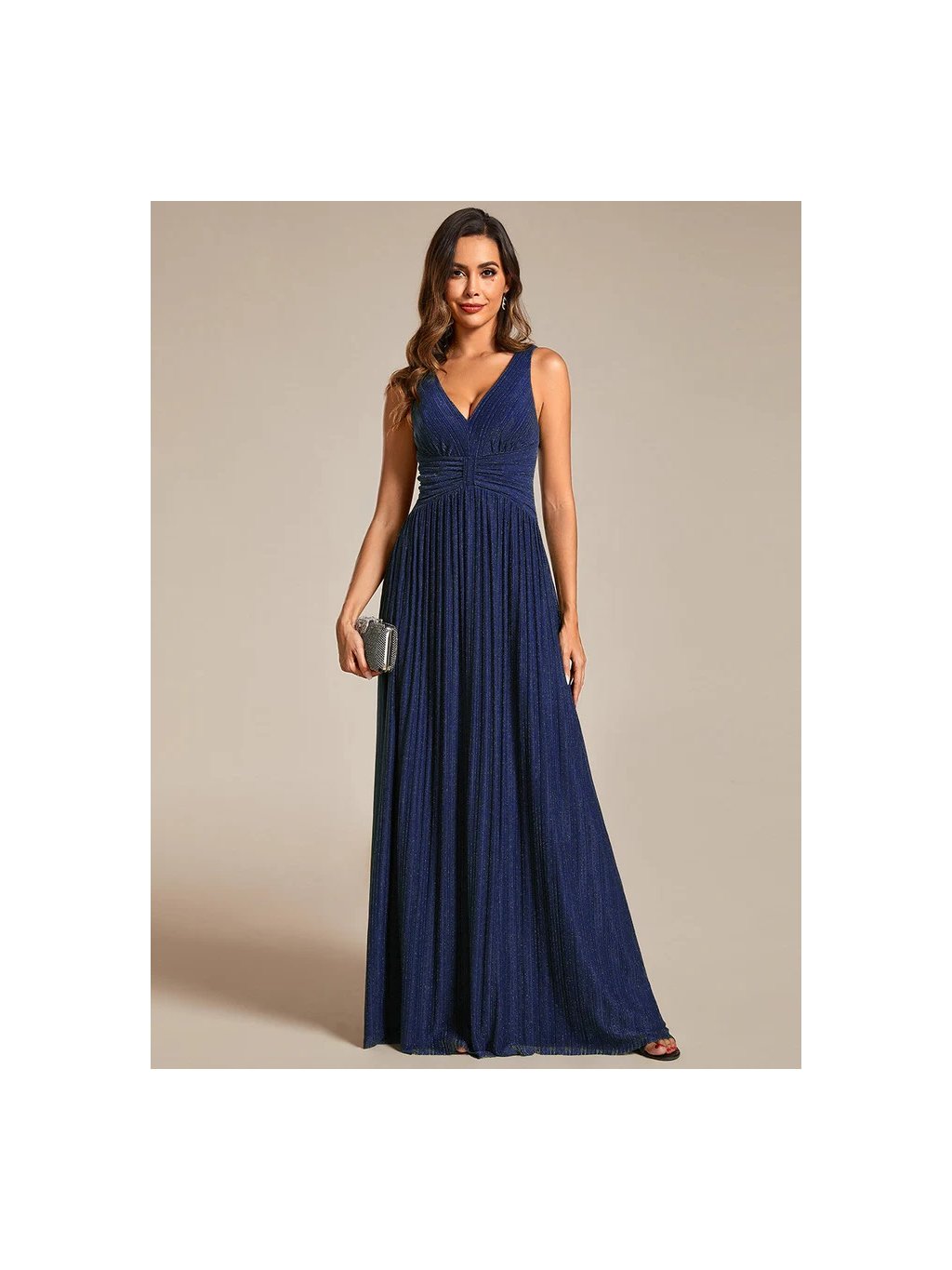 Luxusní modré šaty Ever Pretty. Dlouhé luxusní šaty, ve kterých Vás nikdo nepřehlédne. Šatičky bez rukávů, mají hluboký véčkový výstřih. Empírový pas a jemně skladané výtváří luxus, Na zádech jsou až ke krku,Jemné odlesky vytváří zařivý efekt,