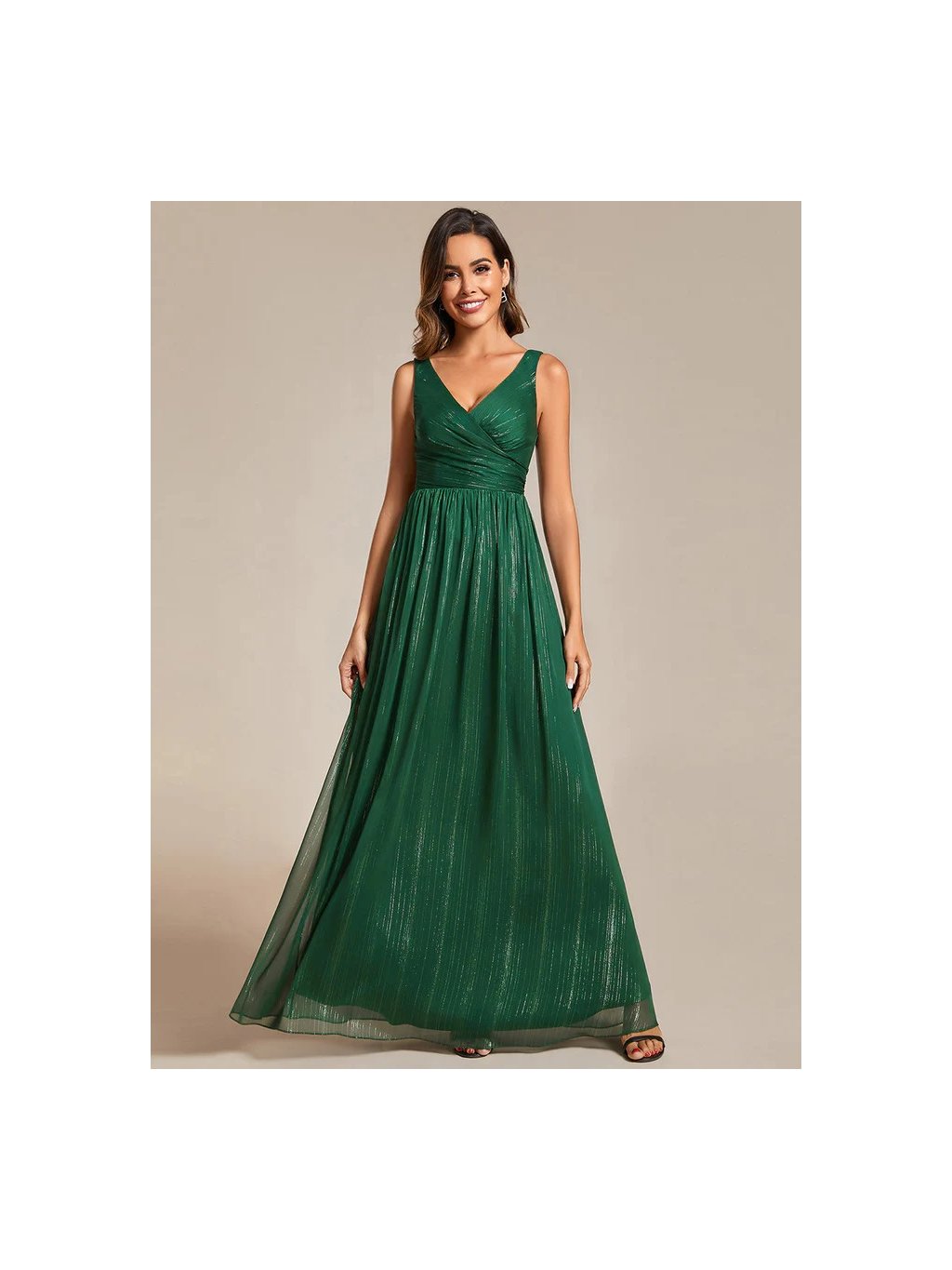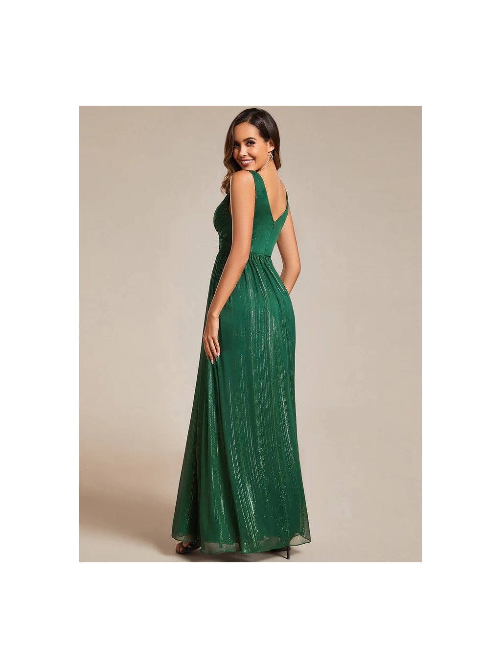 Luxusní zelené šaty Ever Pretty. Dlouhé luxusní šaty, ve kterých Vás nikdo nepřehlédne. Šatičky bez rukávů, mají hluboký véčkový výstřih. Empírový pas a jemně skladané výtváří luxus,Jemné odlesky vytváří zařivý efekt,