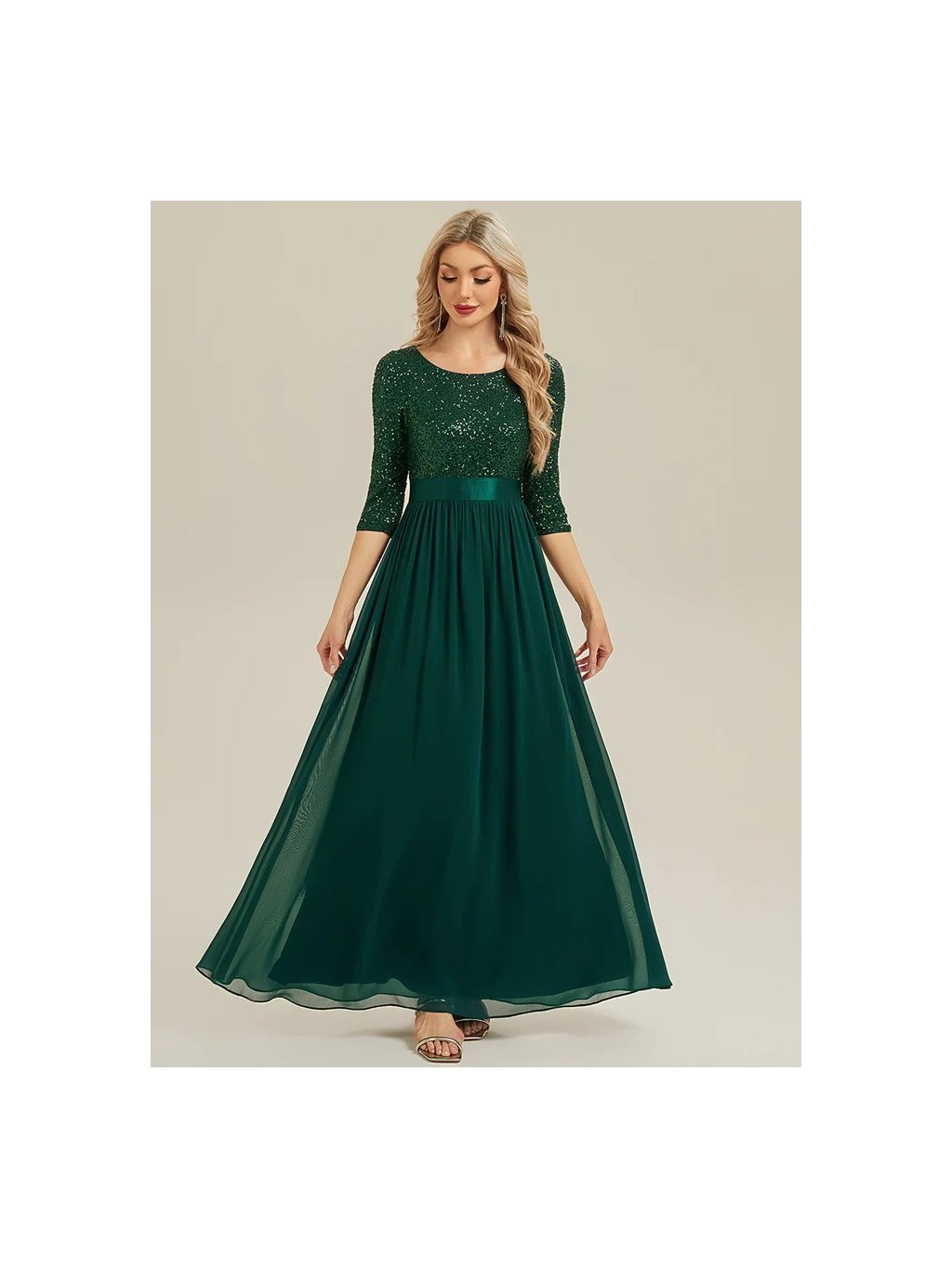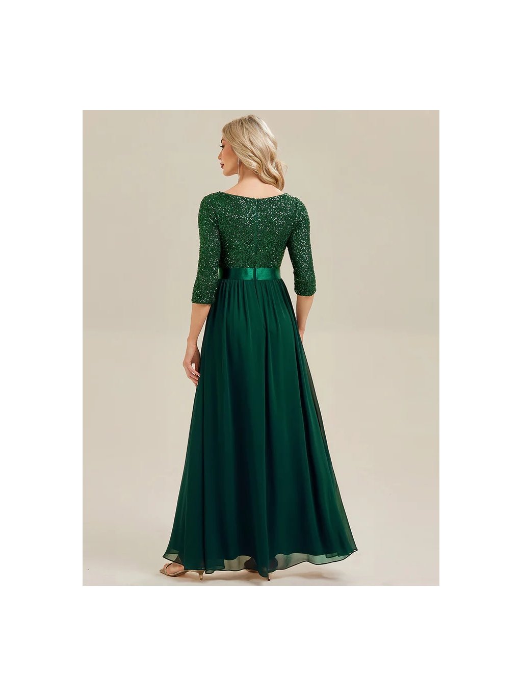 Úchvatné plesové šaty Ever Pretty. Šaty mají 3/4 rukávy. Na prsou kulatý výstřih. Flitrový živůtek.