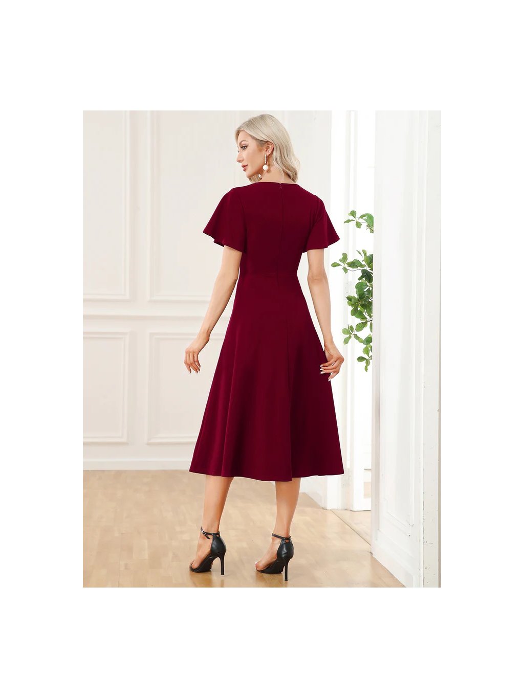 Jednoduché šaty na ples, vhodné i do tanečních. Šaty jsou střední délky ,s ktrátkým rukavem a výstřihem. Jsou z trochu elastického materiálu.
