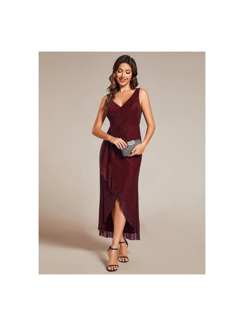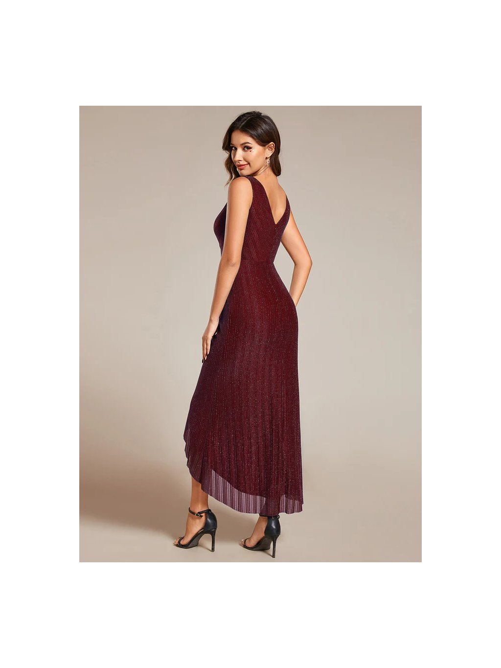 Luxusní šaty na ples, vhodné i do tanečních nebo na svadbu. Šaty jsou na široká ramínka. Na prsou i zádech mají hluboký véčkový výstřih. Jsou z velmi příjemného a lehkého materiálu.Třpitivé a od pasu ke kolenům nařasené.
