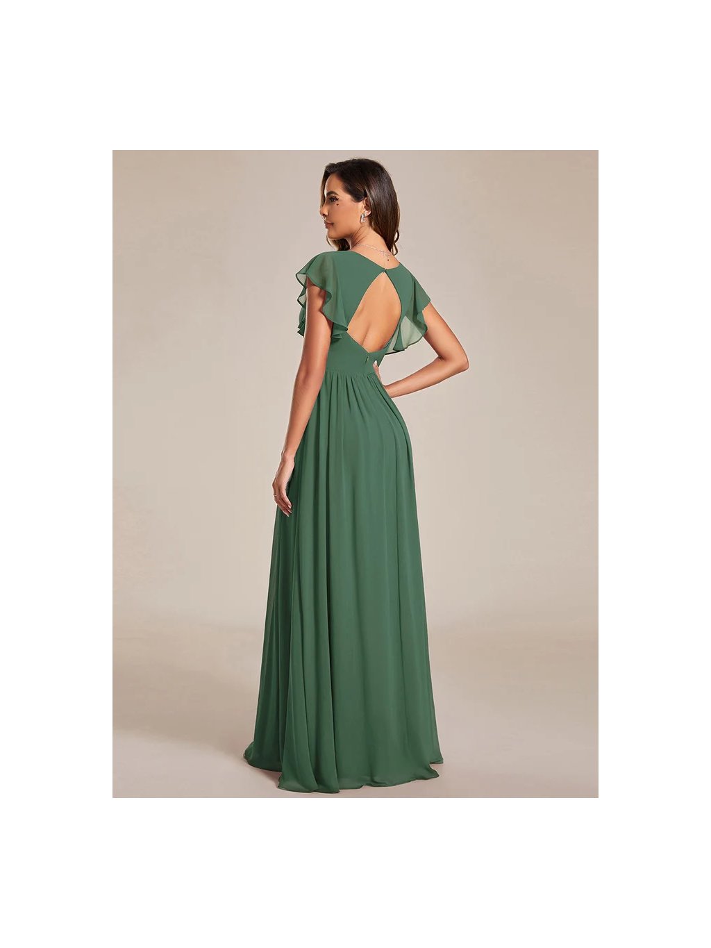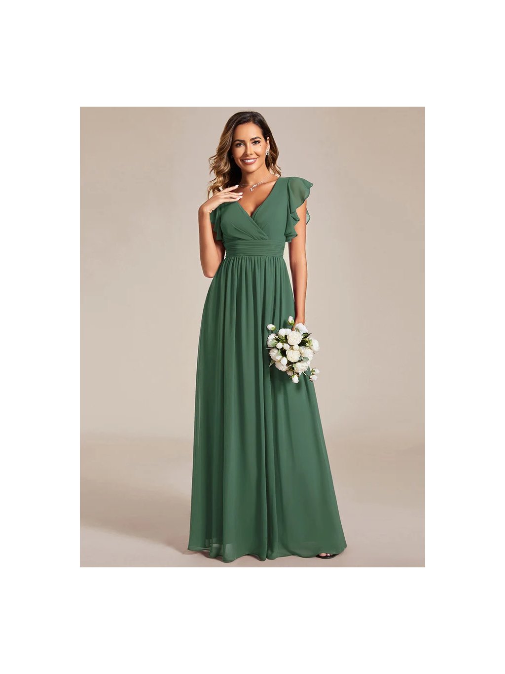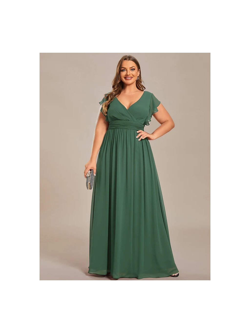 Šaty mají krátké volné rukávky volánkové. Na prsou je véčkový výstřih. Šatičky mají skrytý zip na zádech a vykrojení .Šatičky jsou lehké a krásně se přizpůsobí Vaší postavě.