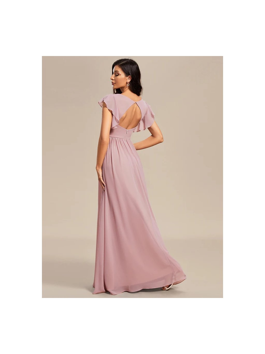 Šaty mají krátké volné rukávky volánkové. Na prsou je véčkový výstřih. Šatičky mají skrytý zip na zádech a vykrojení .Šatičky jsou lehké a krásně se přizpůsobí Vaší postavě.