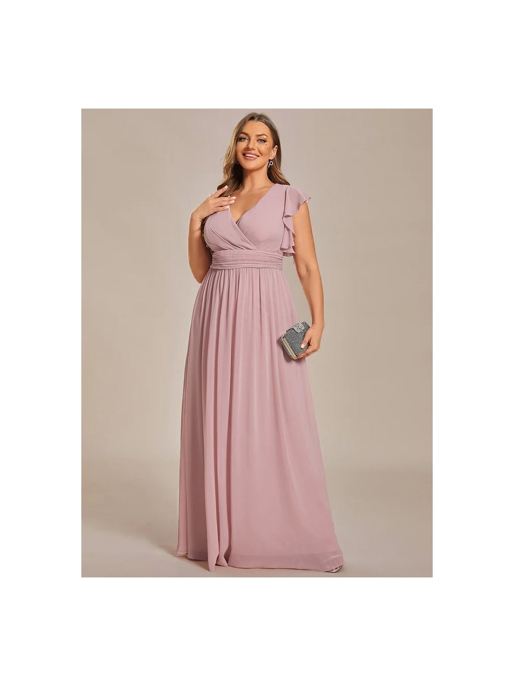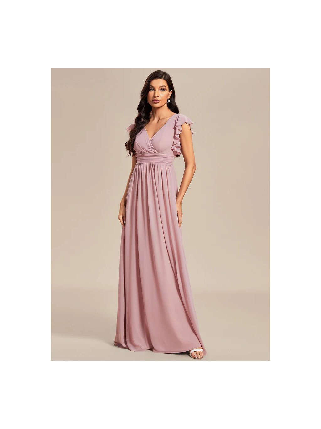 Šaty mají krátké volné rukávky volánkové. Na prsou je véčkový výstřih. Šatičky mají skrytý zip na zádech a vykrojení .Šatičky jsou lehké a krásně se přizpůsobí Vaší postavě.