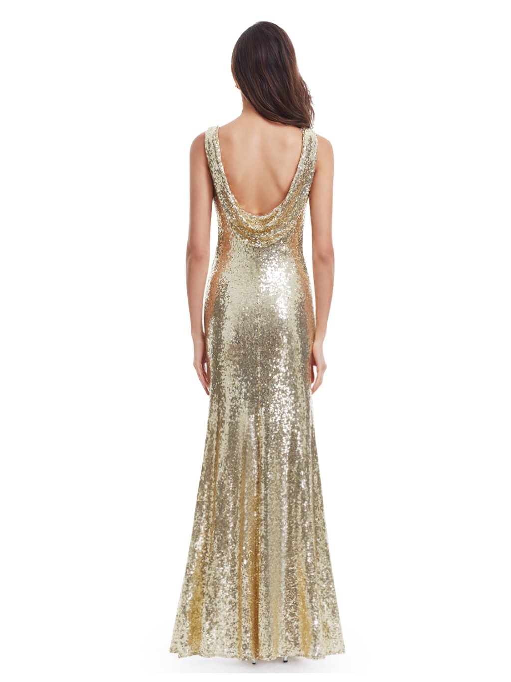 Luxusní šaty na ples, vhodné i do tanečních. Zdobené zlatými flitry. Šatičky mají na zádech tzv. vodu, která podtrhne Váš vzhled.Šaty nemají na prsou vycpávky. Pod sukní je našitá podšívka v polyesteru. Zapínání je z boku na zip.