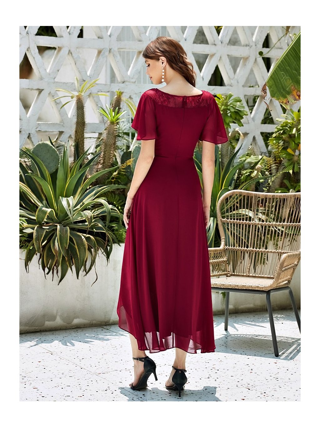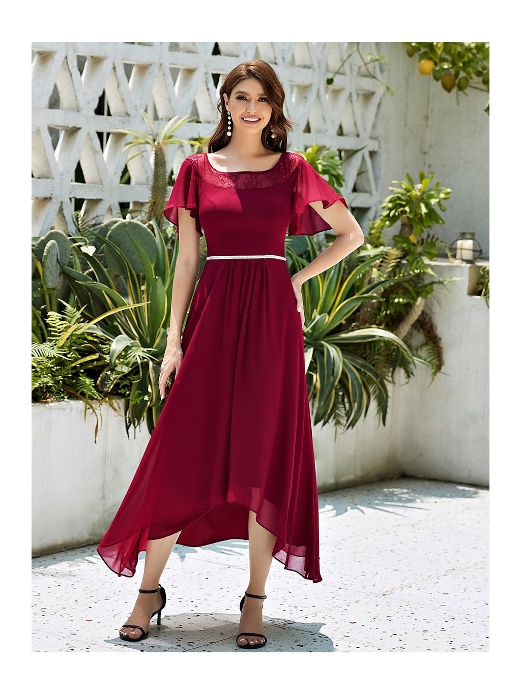 Asymetrické společenské šaty s jemným korálkovým páskem. Spadlé rukávy a v dekoltu krajka, šaty se zapínám vzadu na zip.