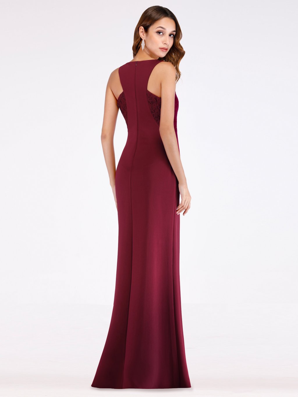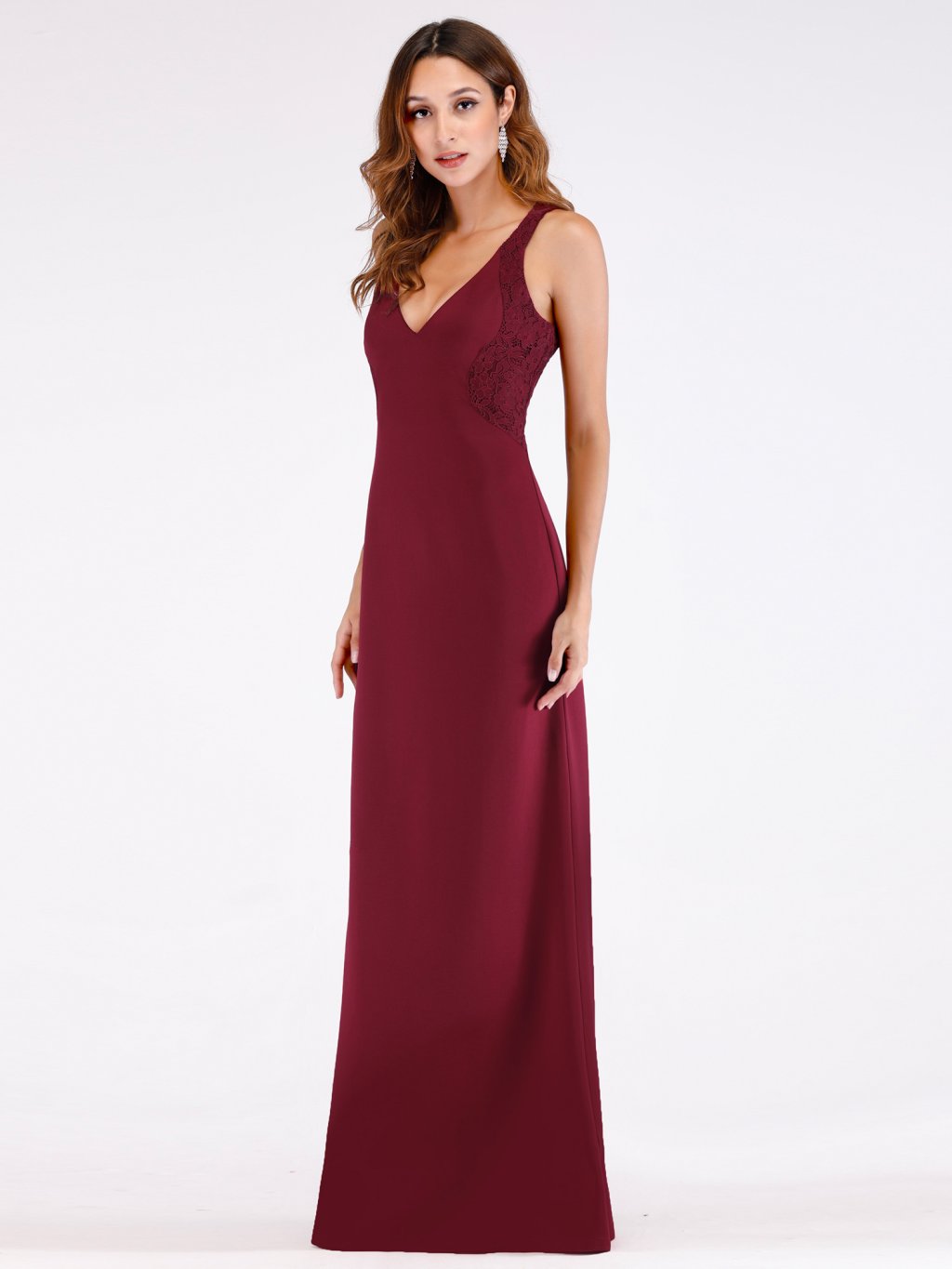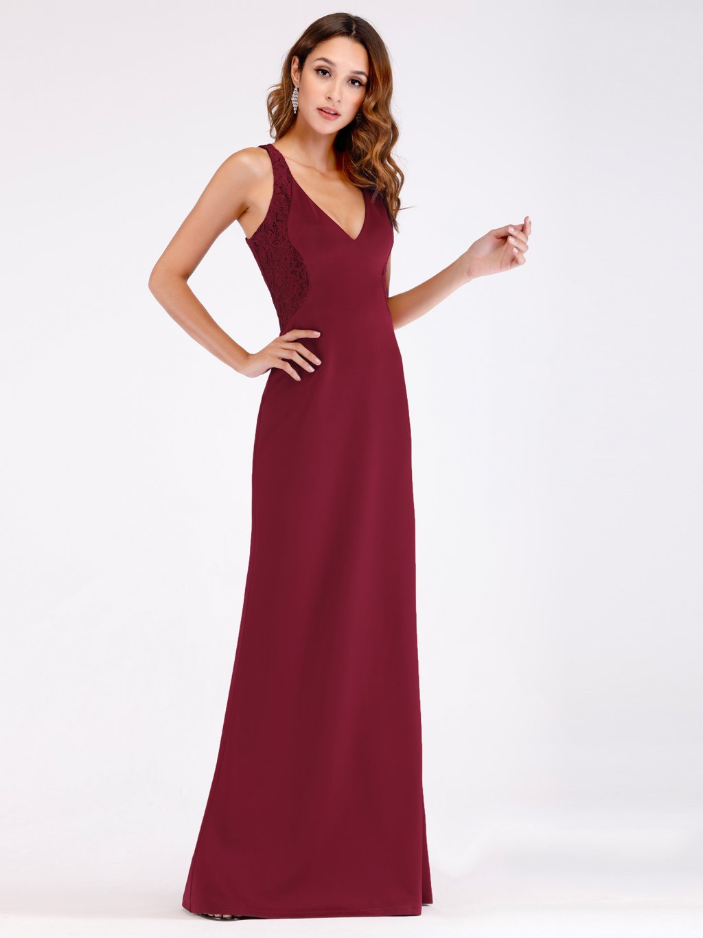 Úchvatné vínové šaty Ever Pretty. Šaty jsou na široká ramínka, která jsou zdobení krajkou. Na prsou hluboký véčkový výstřih. Na zádech jsou šaty řešeny velmi rafinovaně. Jednoduchý střih, přesto dokonalé a okouzlující.