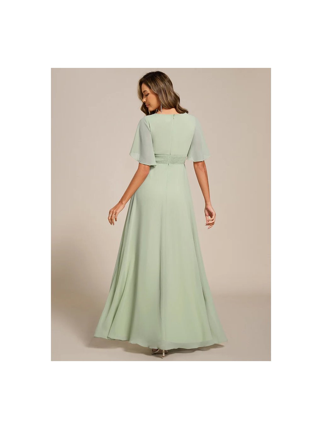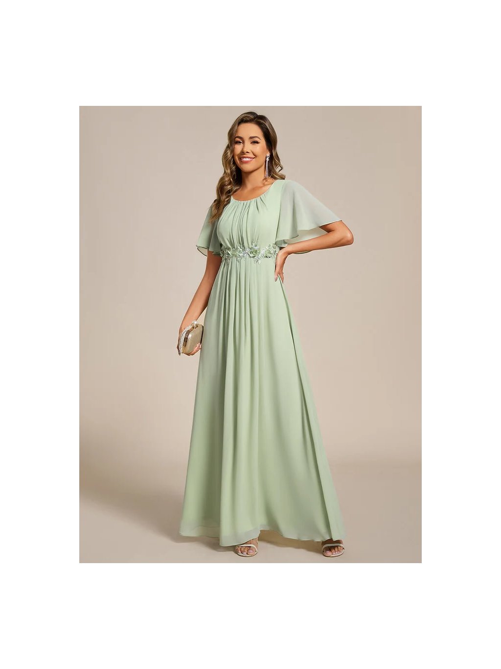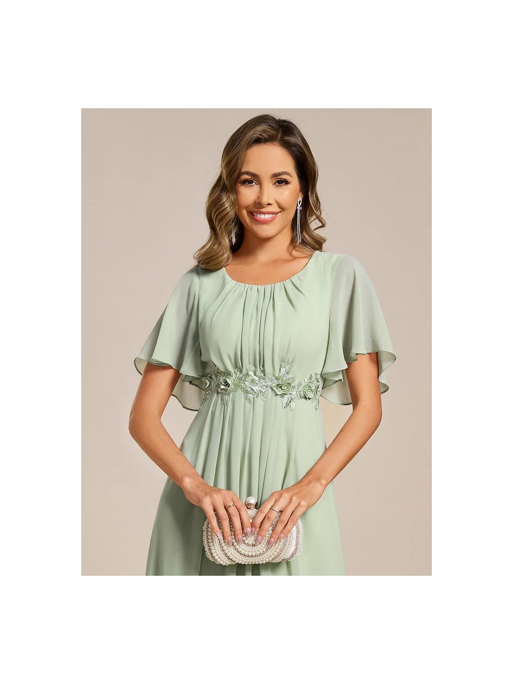 Jednoduché společenské dlouhé šaty na svatbu i večírek. Volné rukávy , kulatý vystřih, v pase výšivka. šaty se zapínám vzadu na zip.