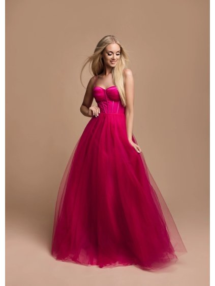 Krásné dlouhé šaty saténový korzet , tylová sukně fuchsiová Další barvy