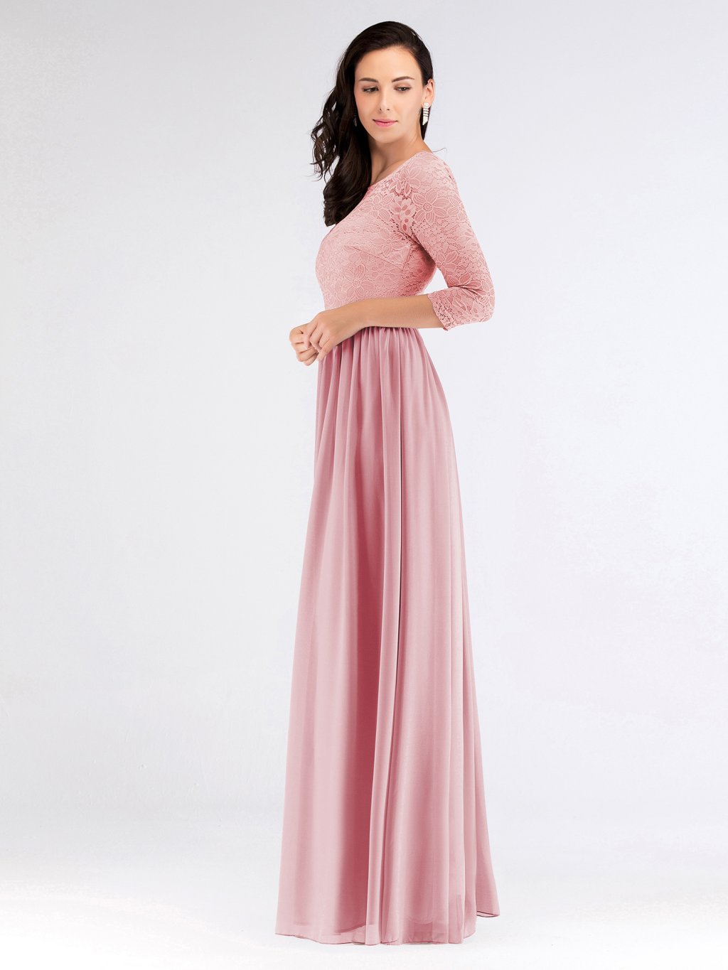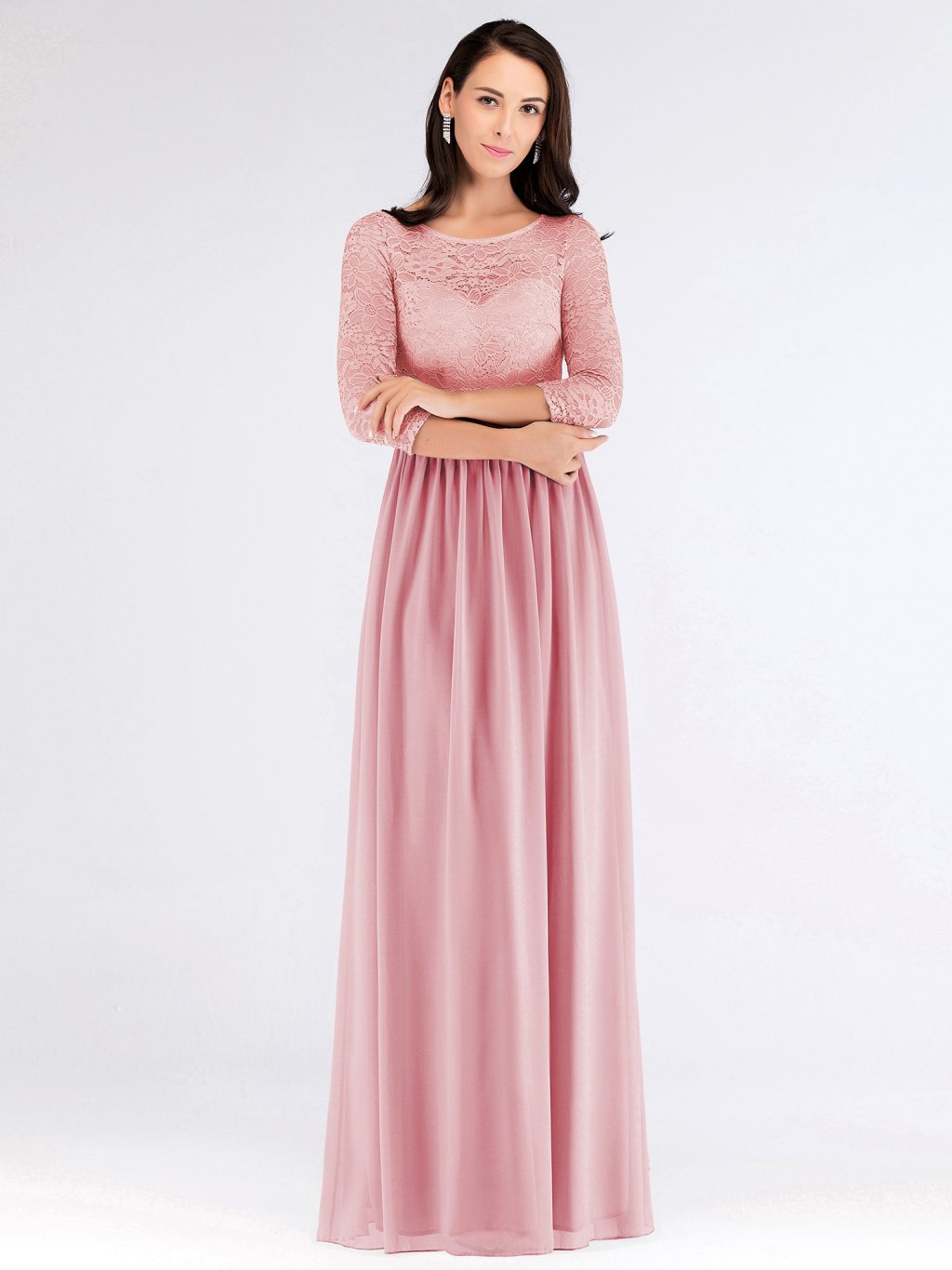 Skvělé dlouhé šaty Ever Pretty. Šaty mají 3/4 rukáv. Mají kulatý výstřih, na zádech mají kapičkový výstřih.. Vrchní díl je zdobený krajkou. Jsou z velmi příjemného materiálu a dělají pěknou postavu.