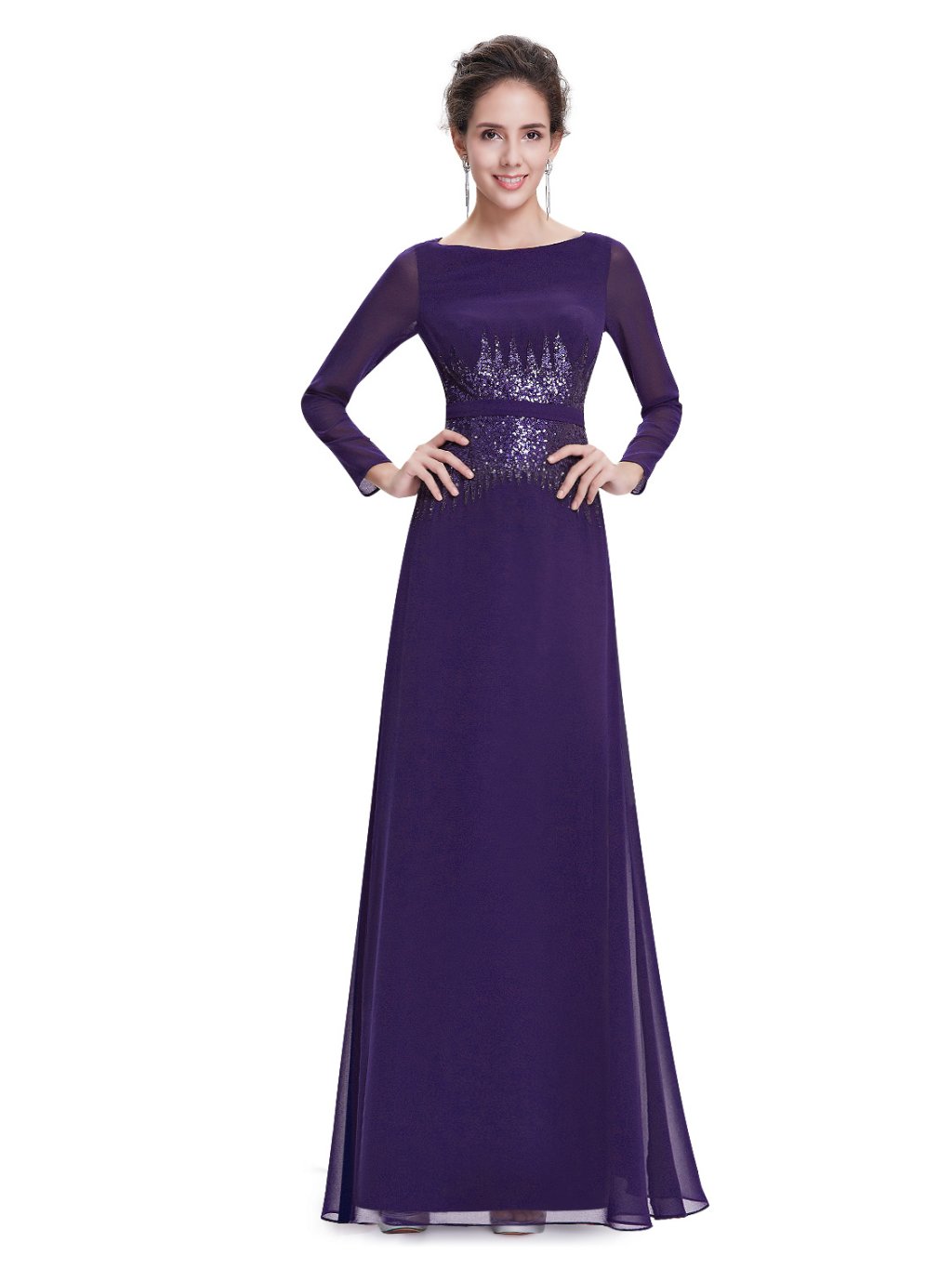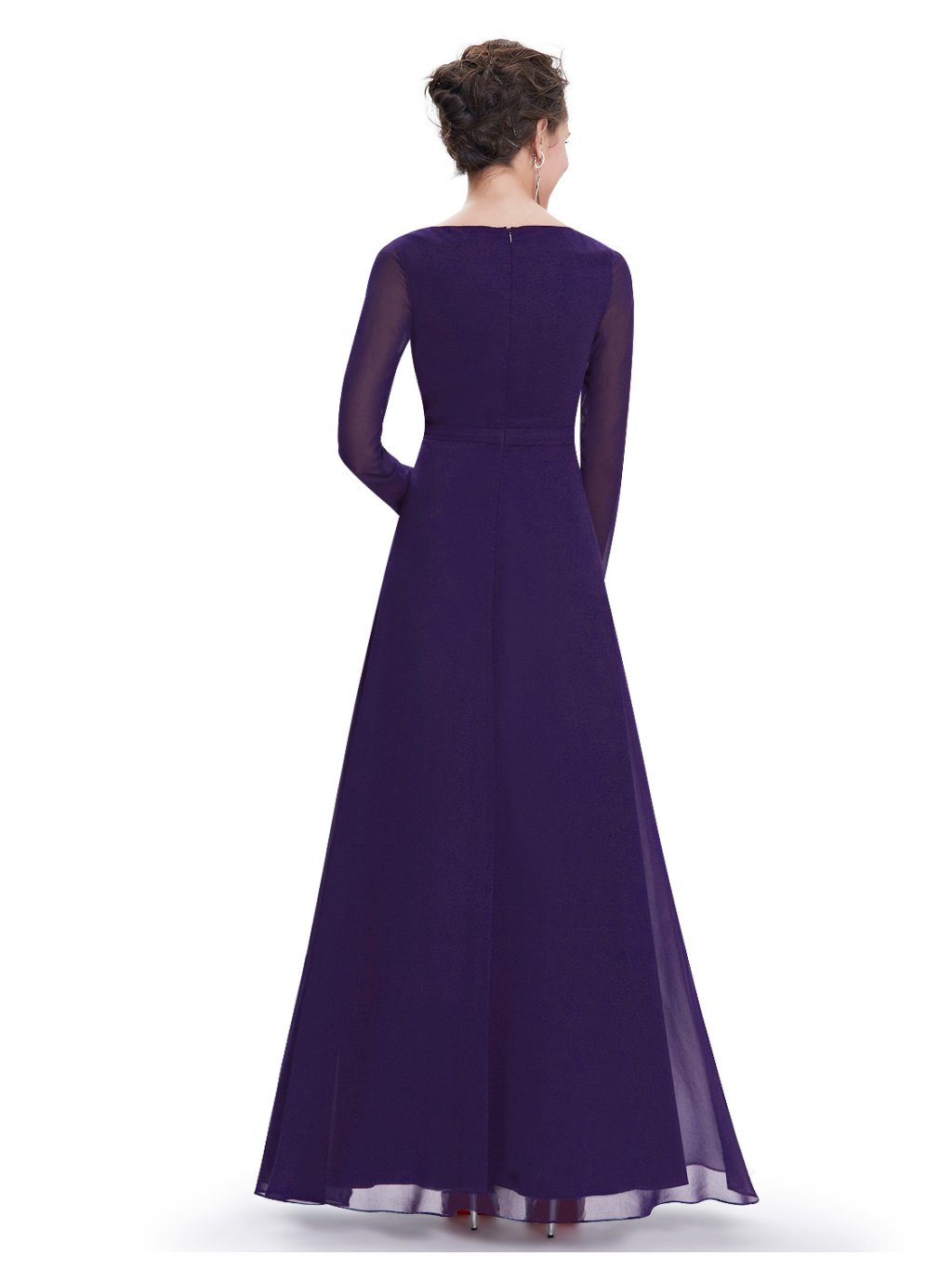 Fialové luxusní šaty na ples, vhodné i do tanečních. Krásné zdobení. Dlouhý rukáv. Vložené vycpávky, je možné vzít bez podprsenky. Skrytý zadní zip.
