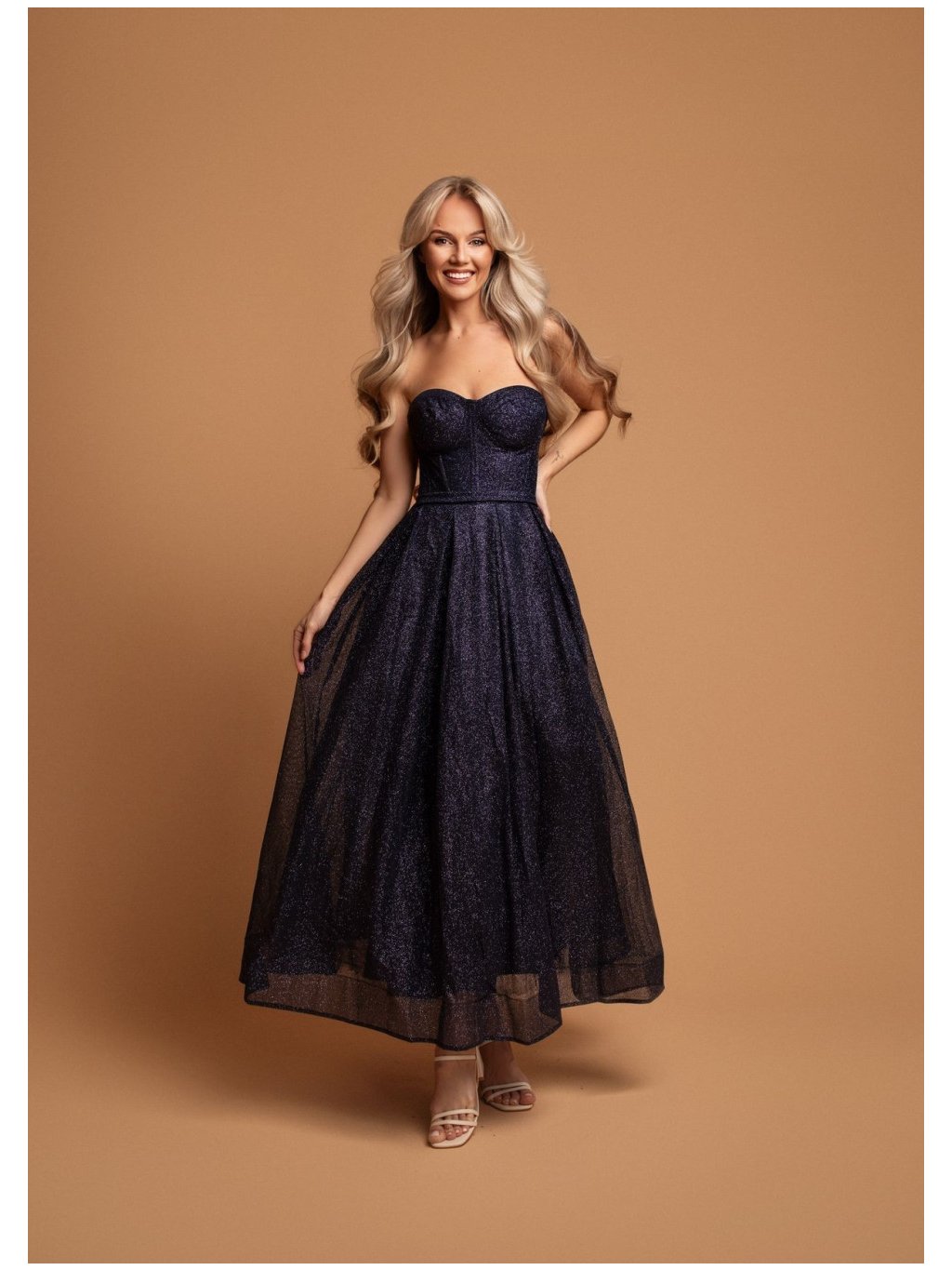 Plesové šaty korzetové tmavě modré třpytivé 2474