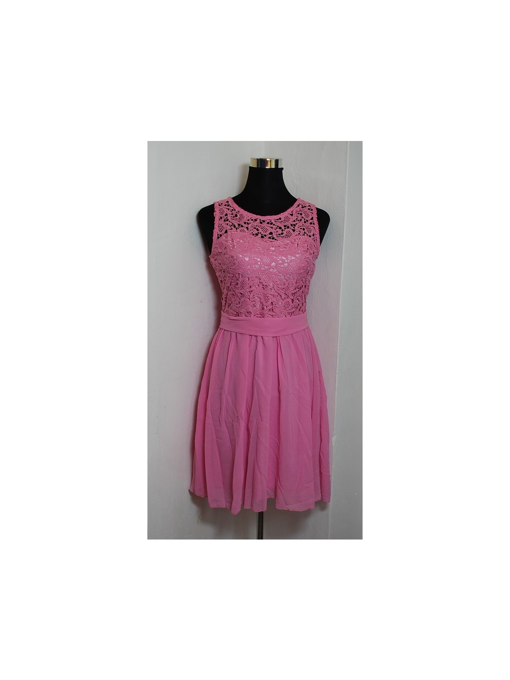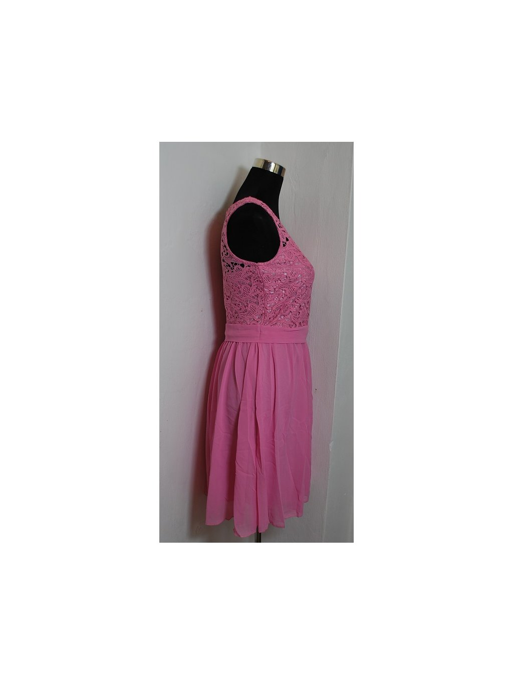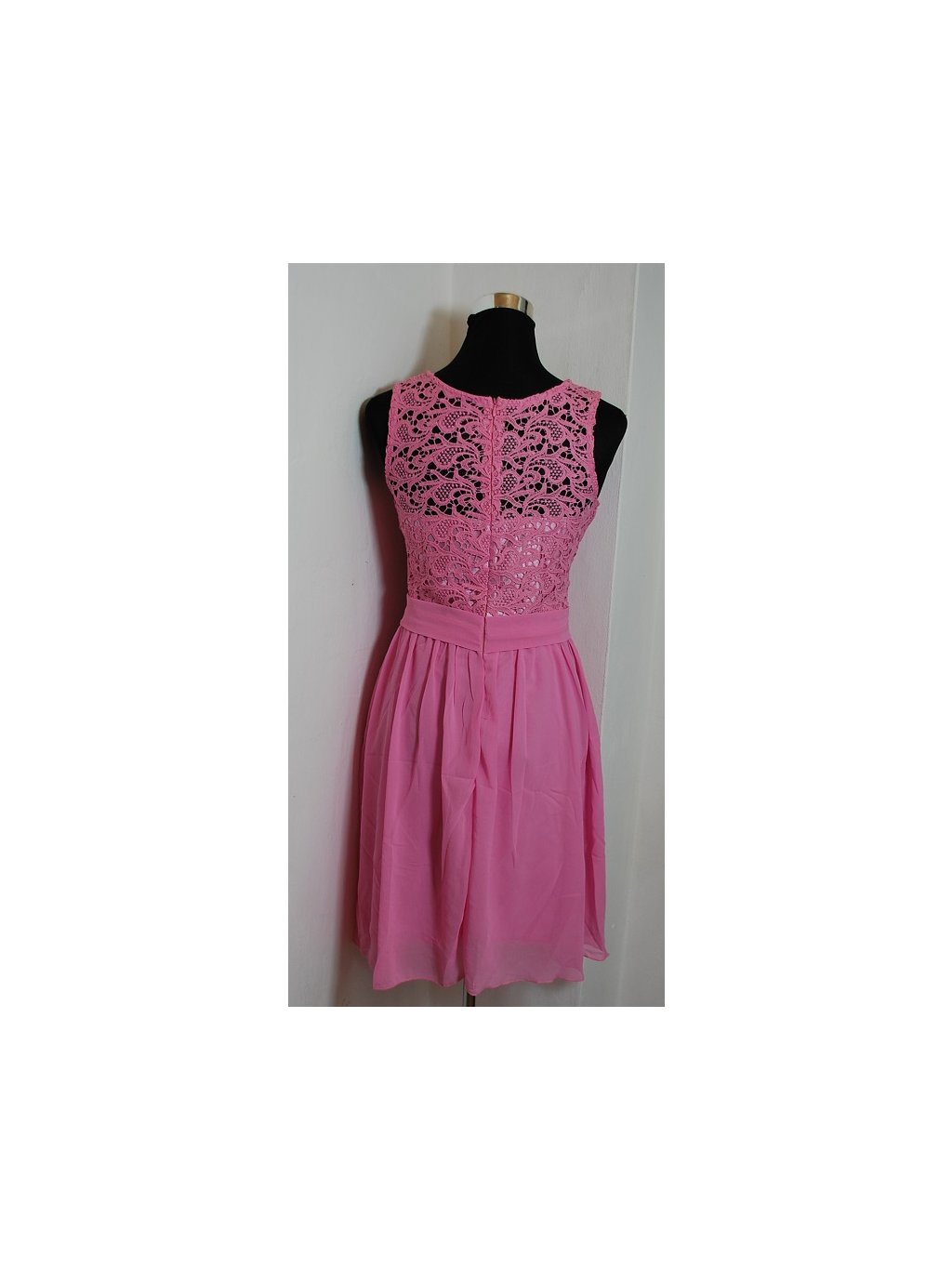 Společenské šaty růžové s krajkou a šifonovou sukní. Šatičky vyfoceny pro reálnou představu, barvy a materiálu. Upozorňujeme, že se jedná o mimoevropské velikosti. Prosíme vždy o přeměření dle uvedených mír v cm.