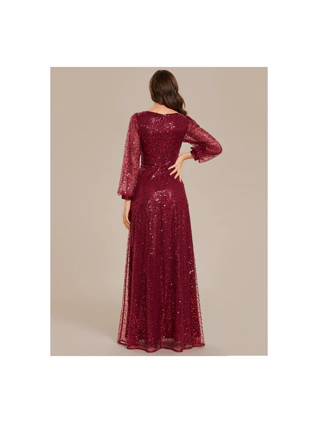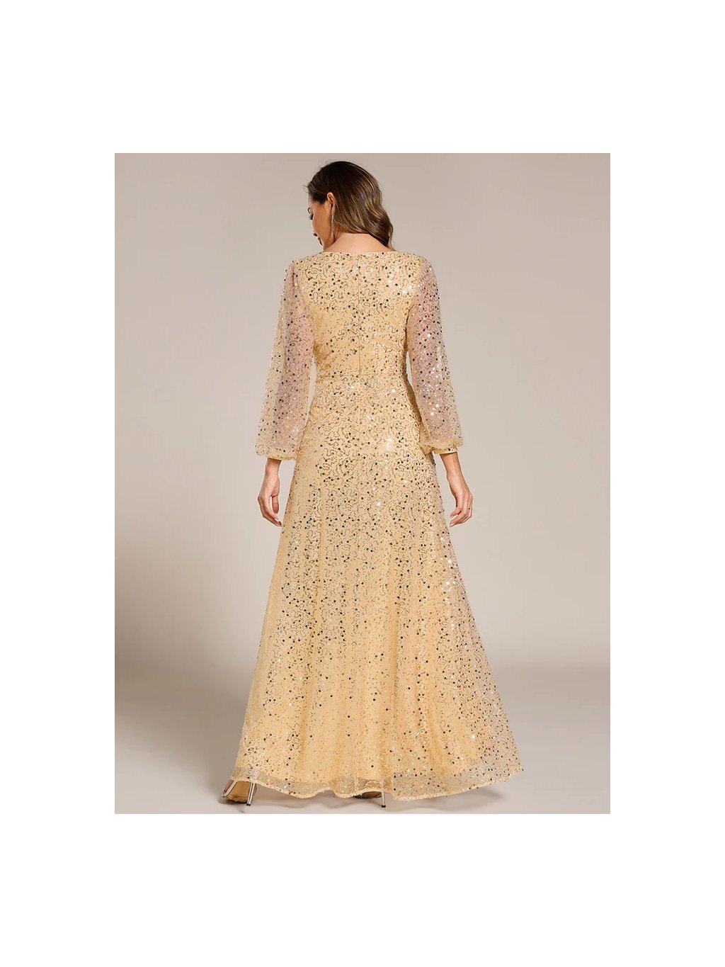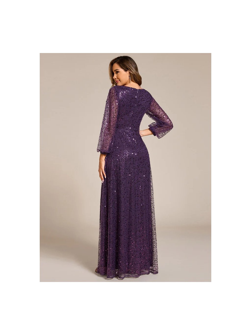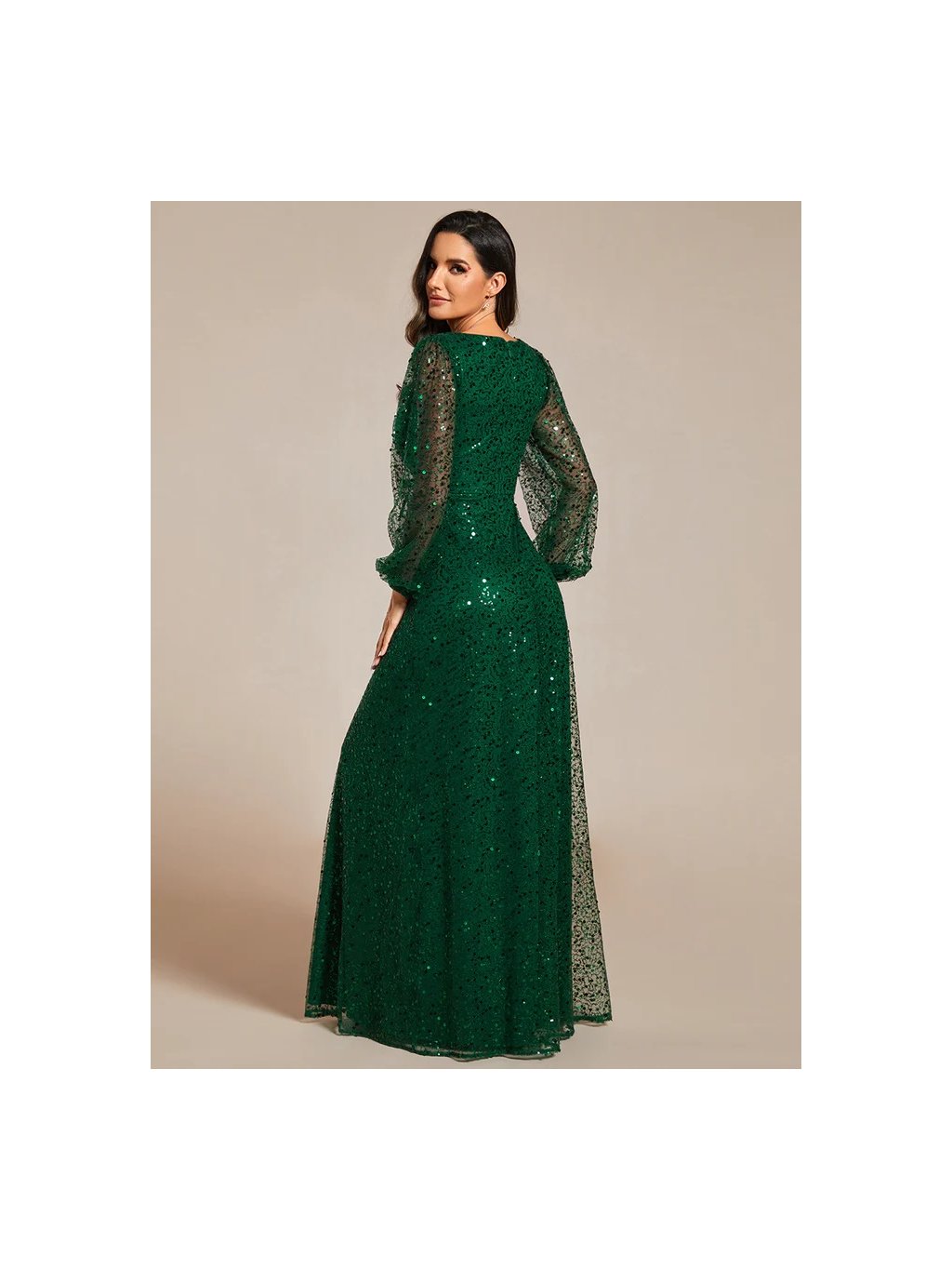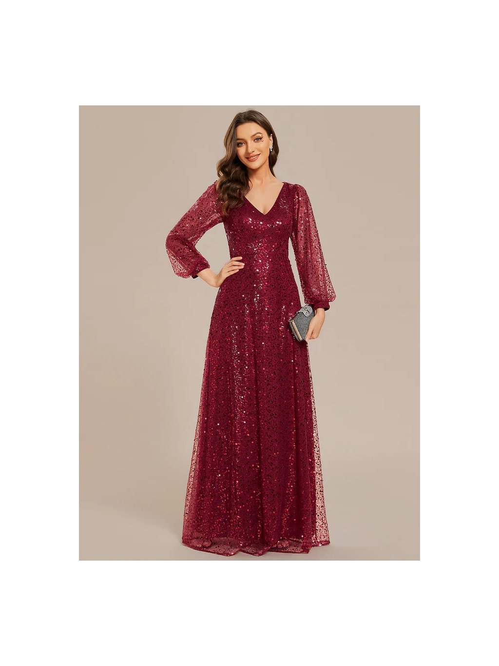 Úchvatné plesové šaty Ever Pretty. Šaty mají dlouhé rukávy. Na prsou véčkový výstřih. Šaty s flitry