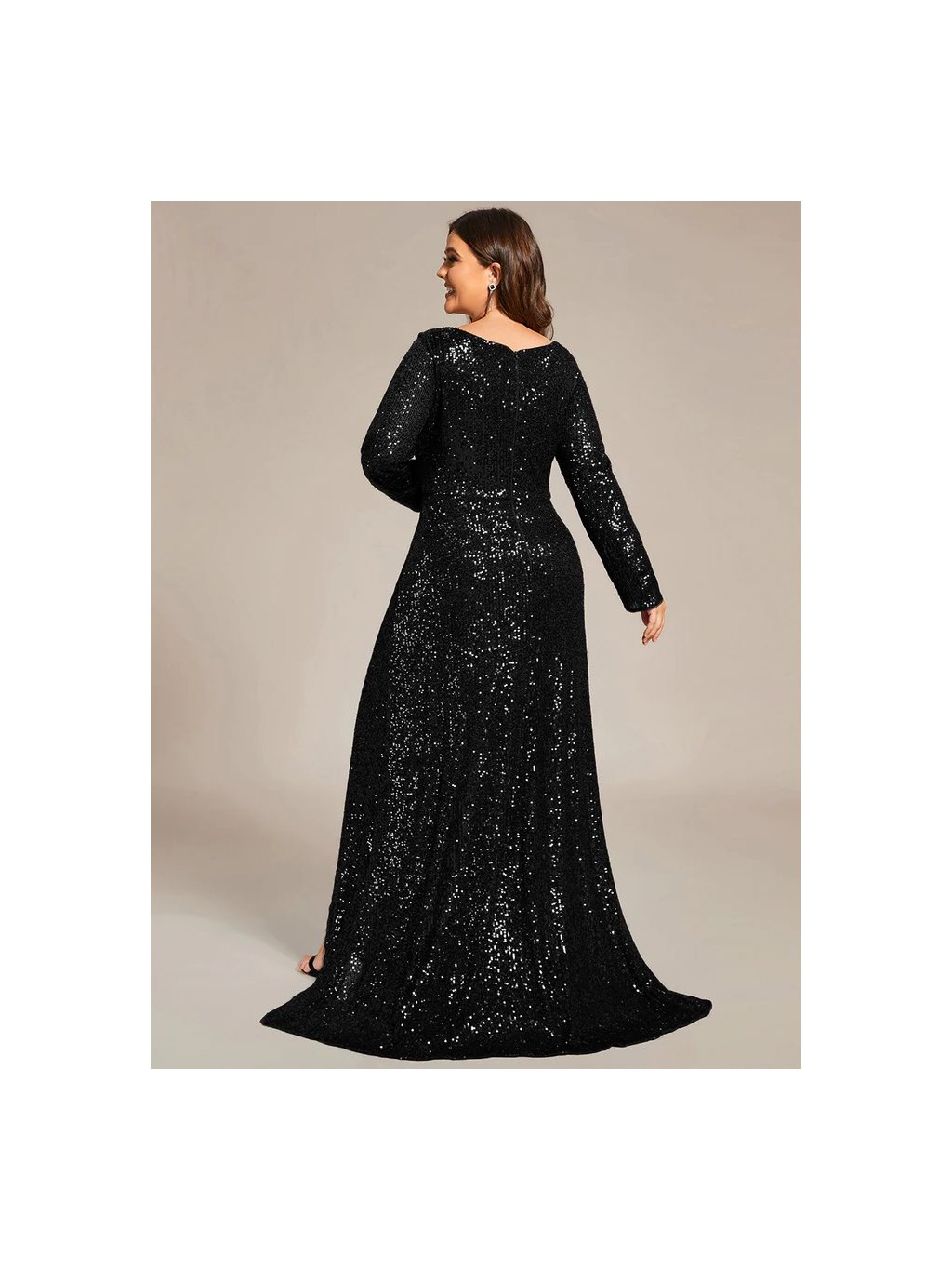 Úchvatné plesové šaty Ever Pretty. Šaty mají dlouhé rukávy. Na prsou véčkový výstřih. Šaty s flitry