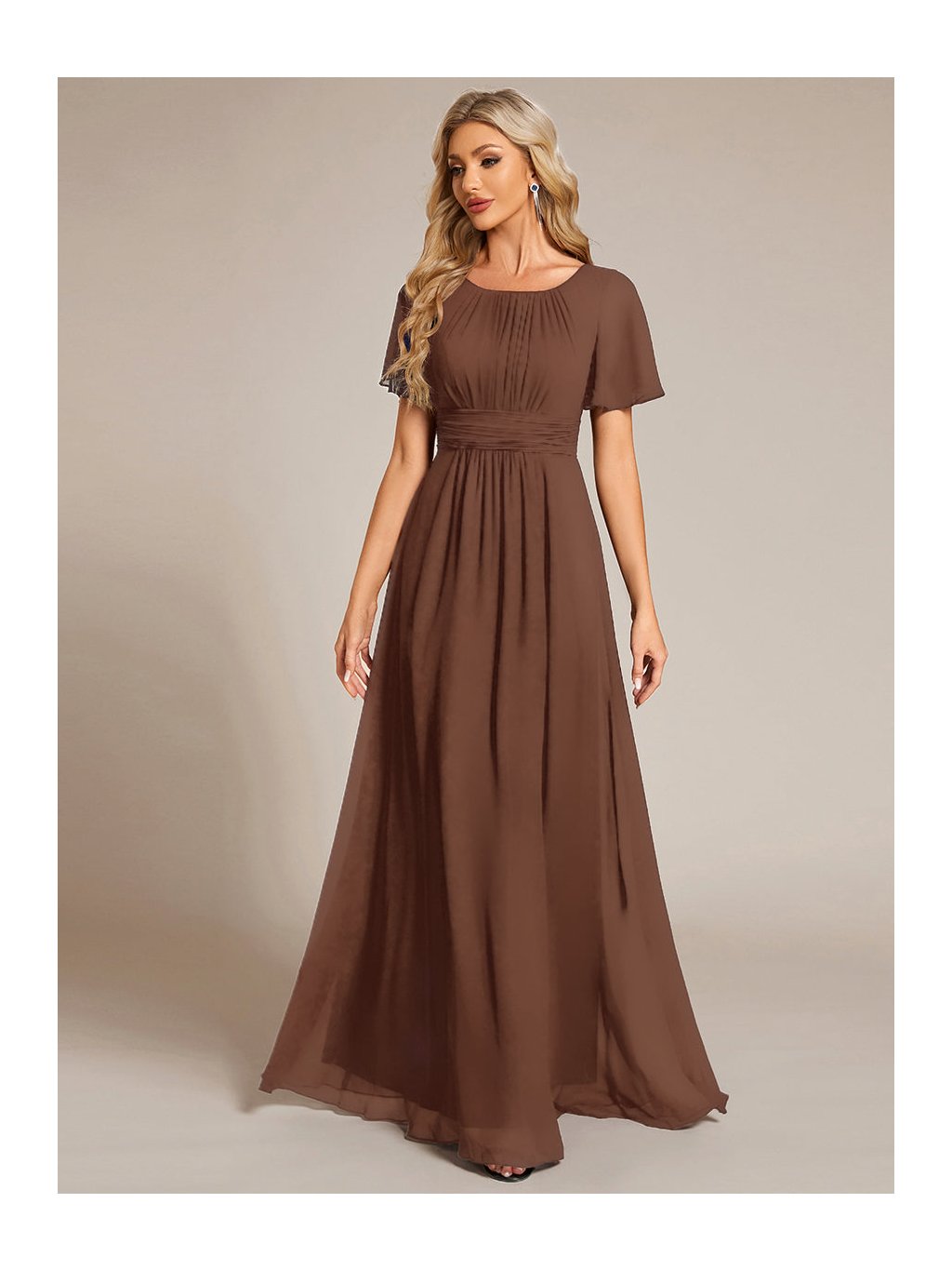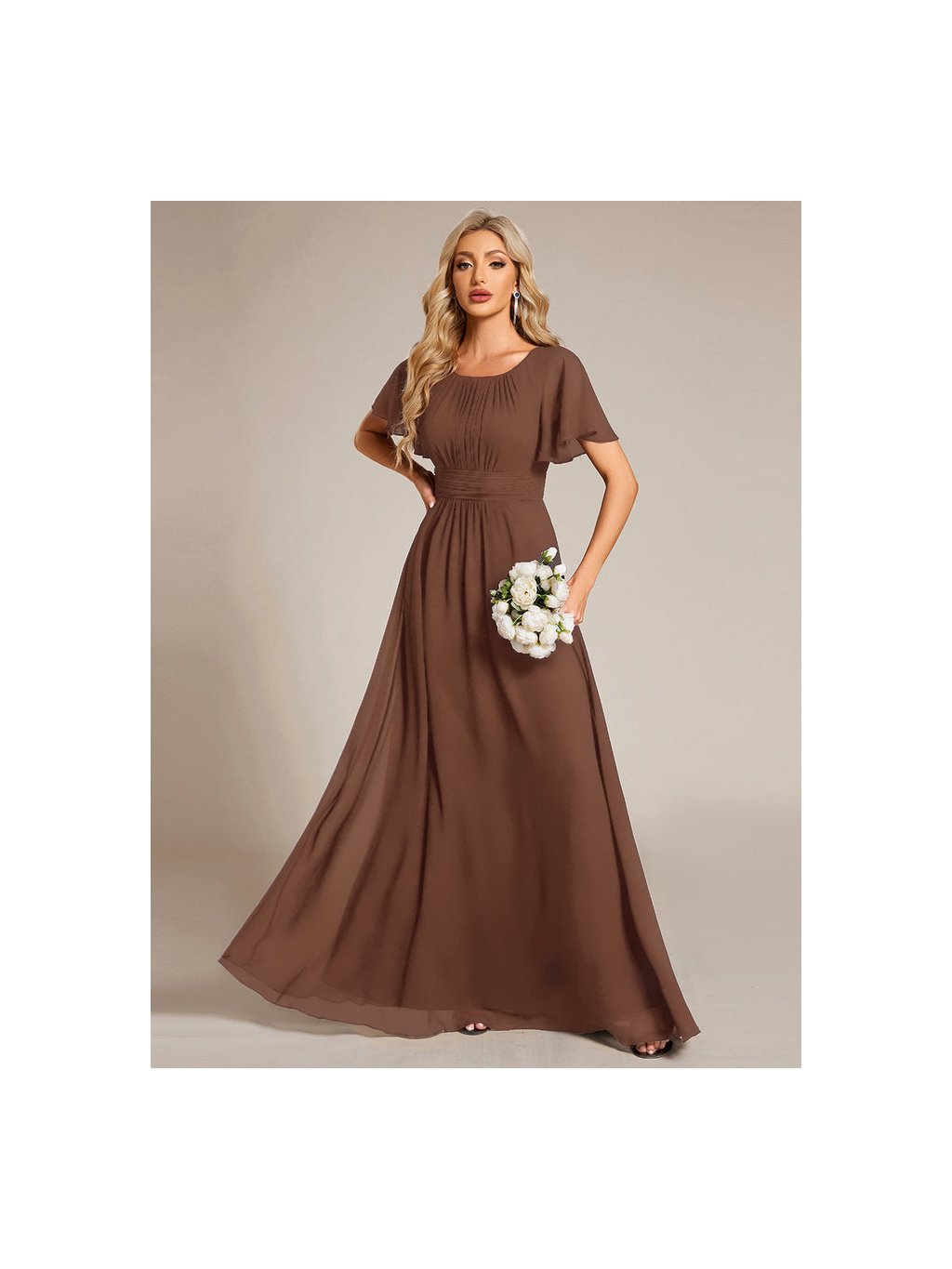 Šaty pro družičky hnědá kulatý dekolt 1840