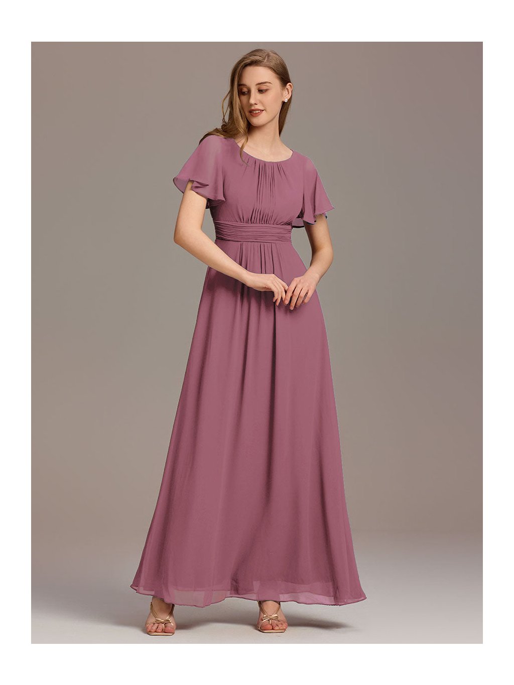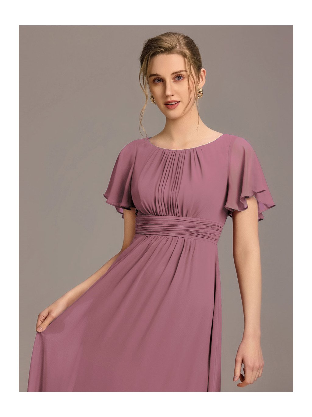 Jednoduché společenské dlouhé šaty na svatbu i večírek. Volné rukávy , kulatý vystřih, krásné jemné řasení. šaty se zapínám vzadu na zip.