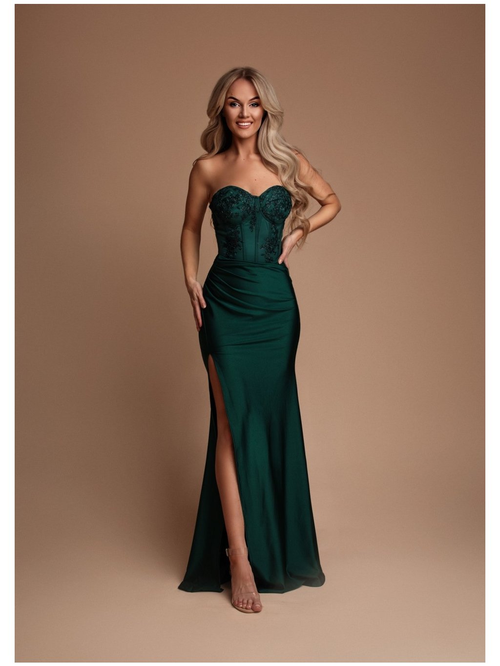 Společenské dlouhé korzetové zelené šaty 2440