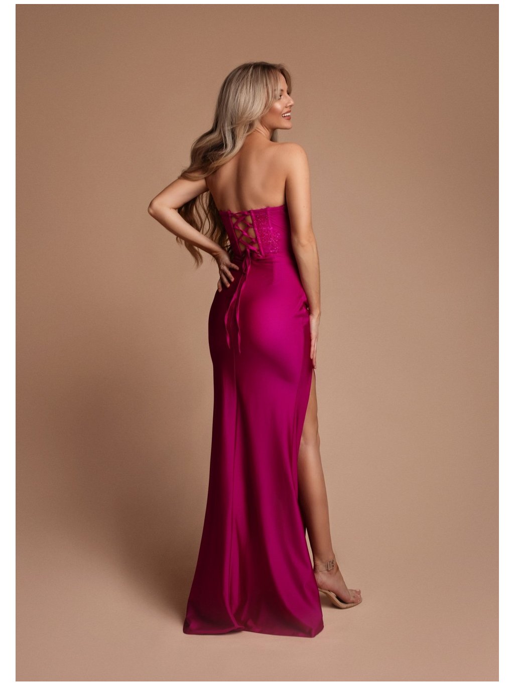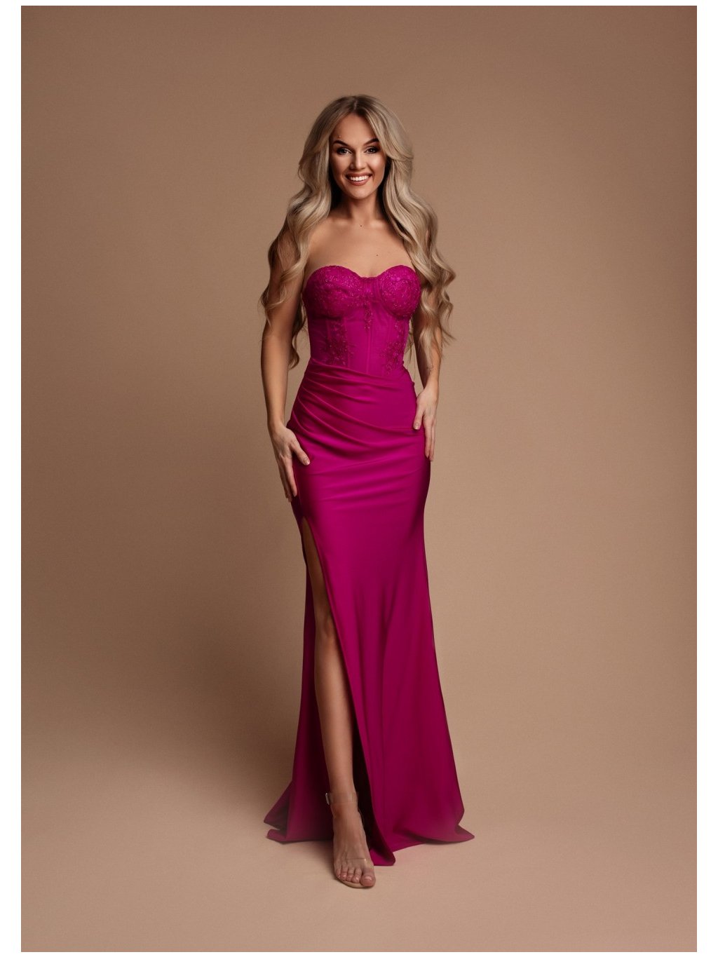 Společenské dlouhé saténové fuchsiové šaty 2440