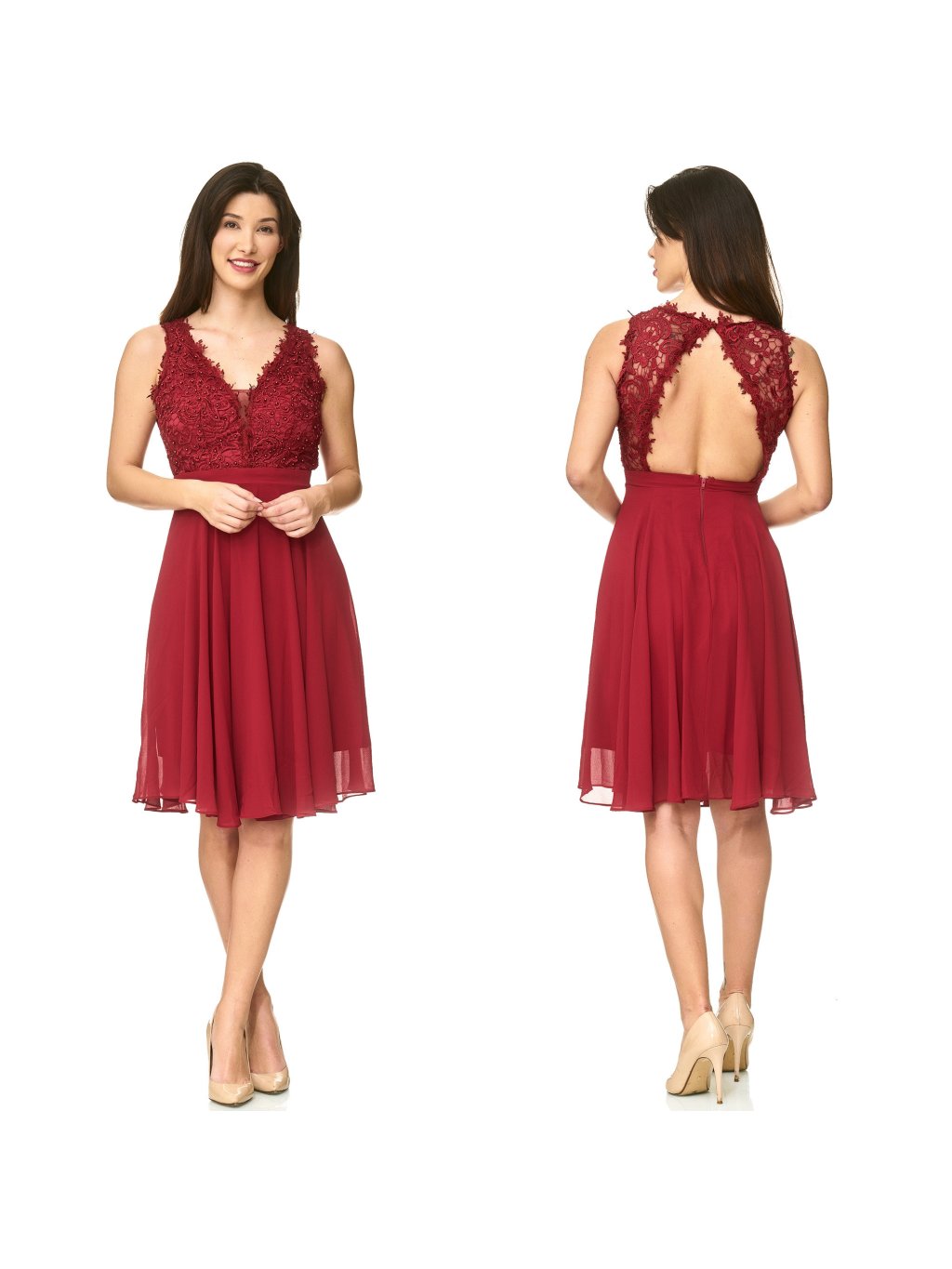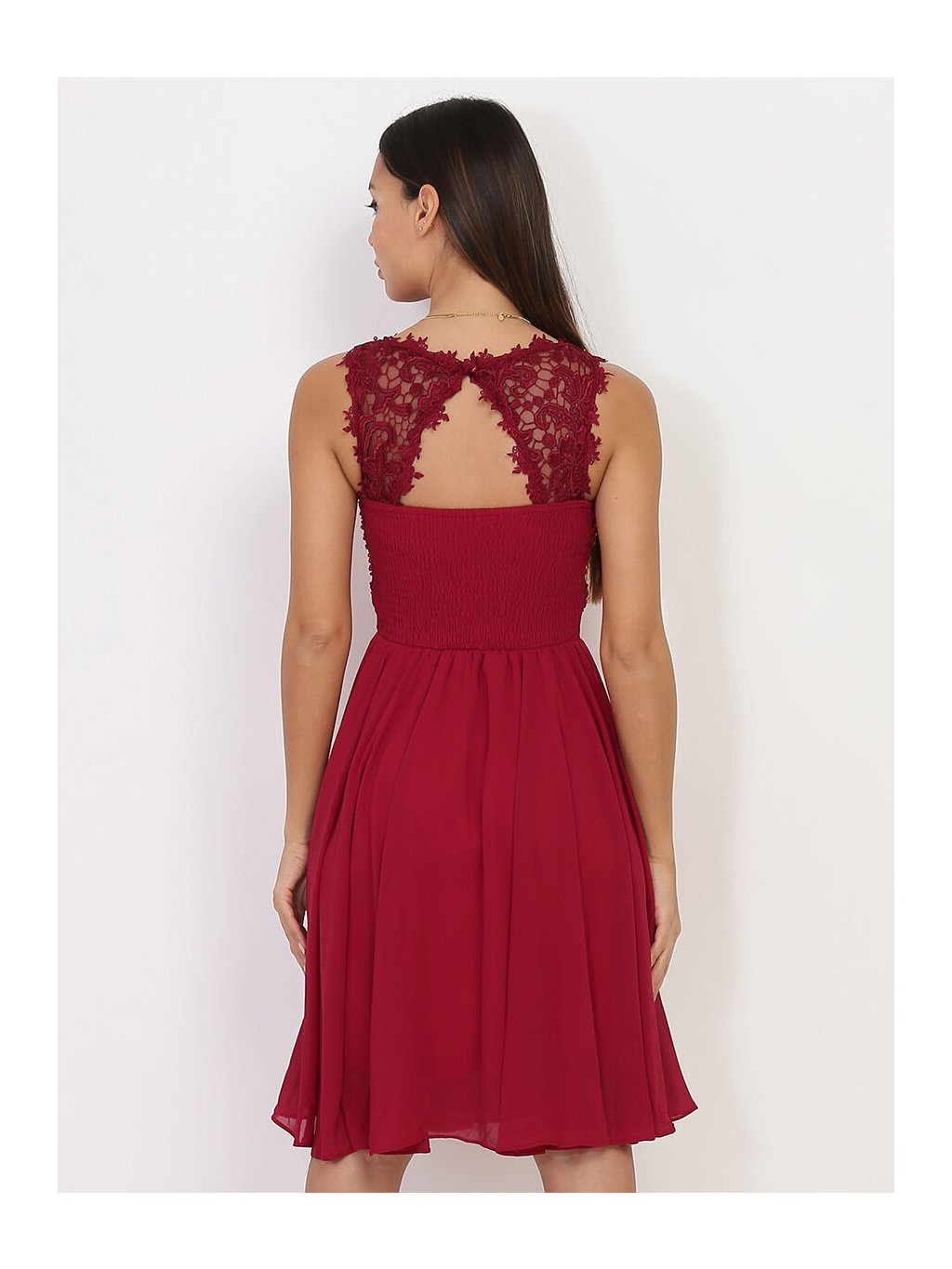 Společenské šaty bordo s krajkou krátké 1340