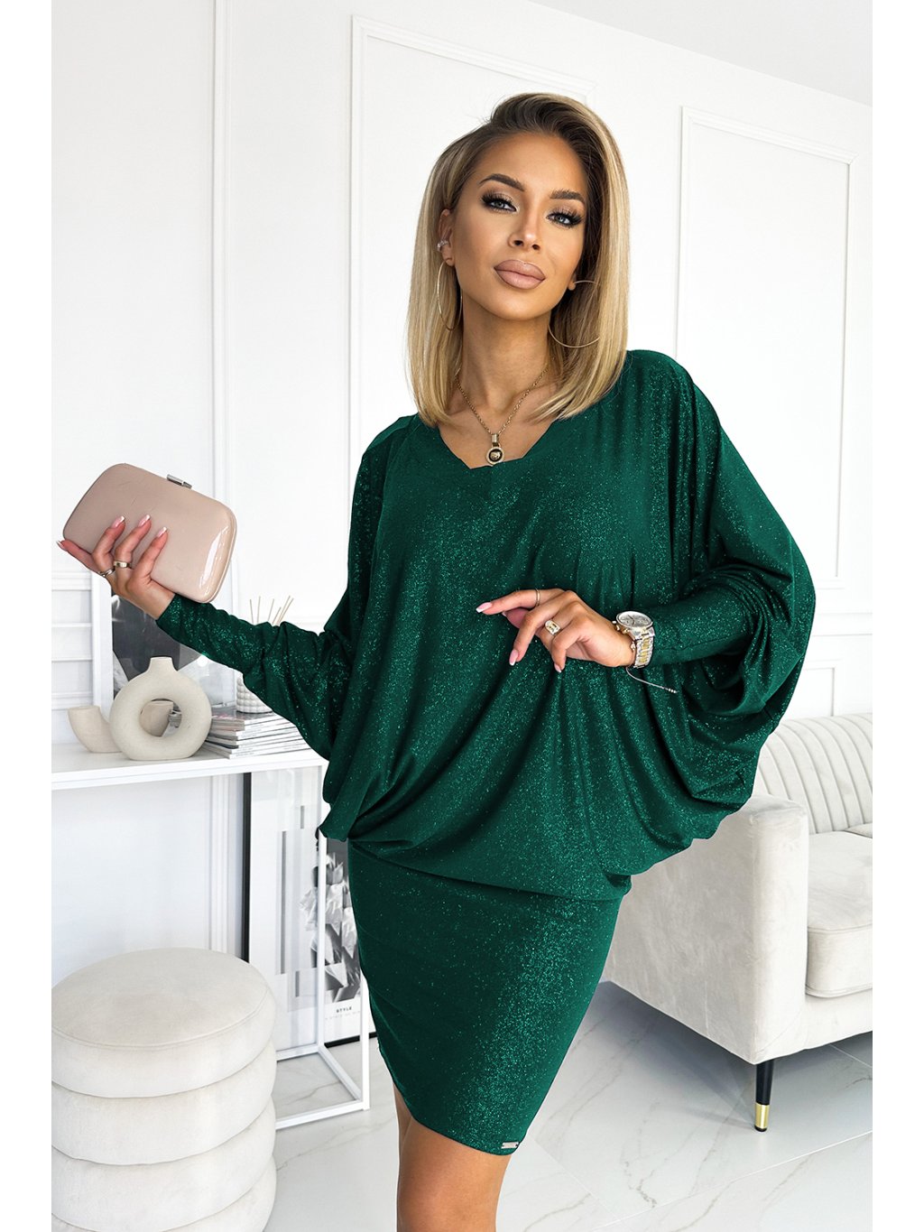 Společenské šaty zelené netopýří rukávy 177053 Numoco