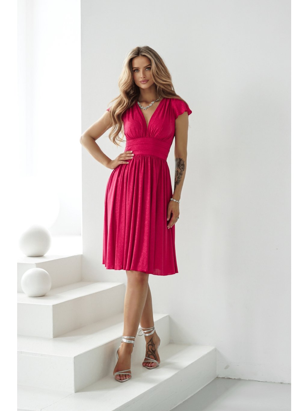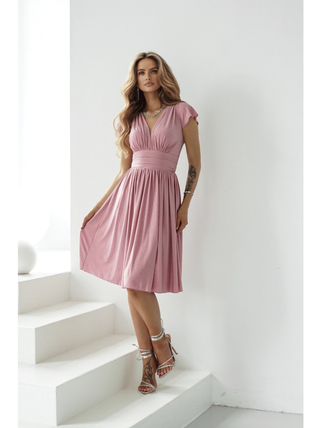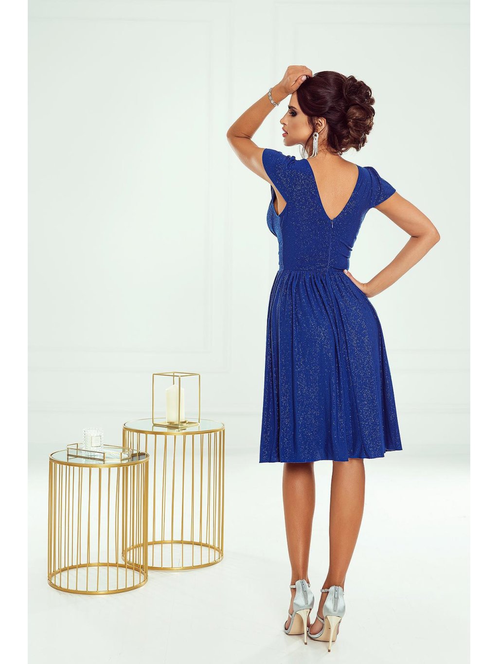 Luxusní šaty z jemně třpytivého materiálu, který je velmi elegantní a nepřhlédnutelný. Budete doslova zářit. Šaty mají krátké rukávy, délku pod kolena. Šaty jsou mírně pružné.