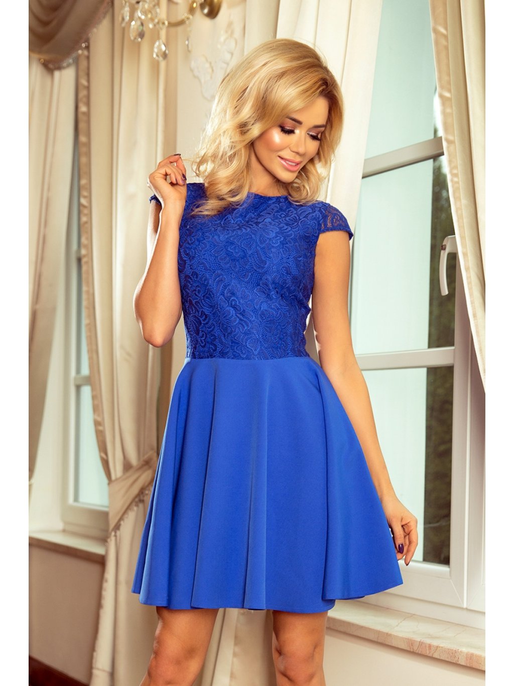 Rozšířené šaty MARTA s krajkou - chrpově modré. Značka numoco. Vyrobeno v Polsku.