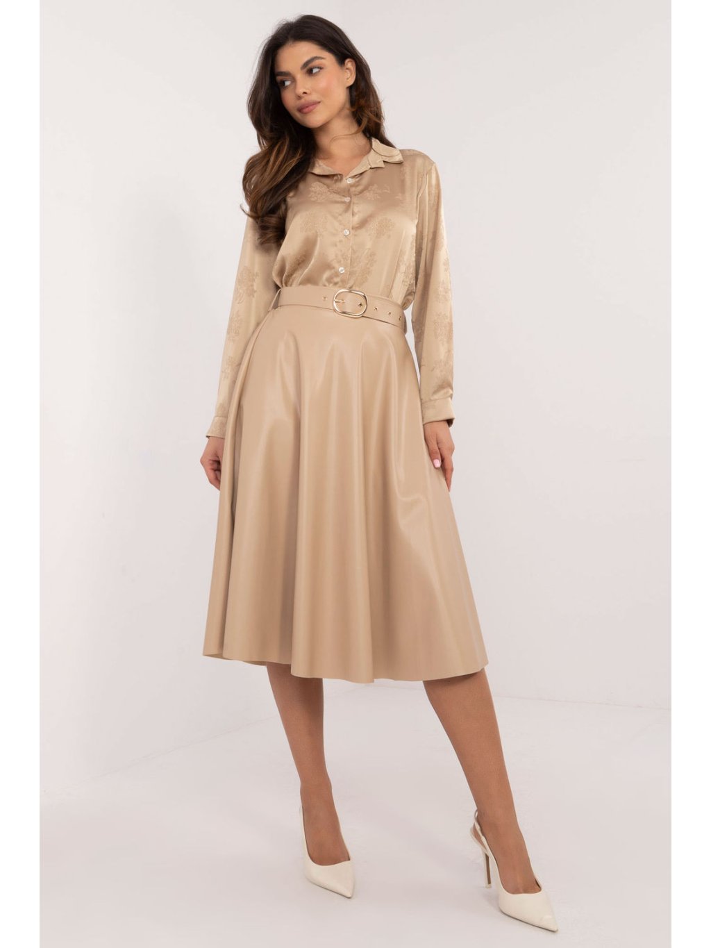 Tato jedinečná sukně je ideální kombinací klasiky a modernosti. Rozkročený střih krásně zdůrazňuje postavu a imitace kůže dodává eleganci. Hladký materiál a absence zbytečných ozdob dělají sukně neuvěřitelně univerzální. Skvěle se hodí jak do práce, tak na setkání s přáteli. Guma na pasu zajišťuje pohodlí po celý den. Tato sukně je investicí do vašeho šatníku. Její univerzální střih a elegantní materiál vám dodají sebejistotu a styl ve každé situaci.