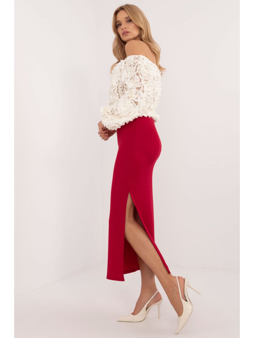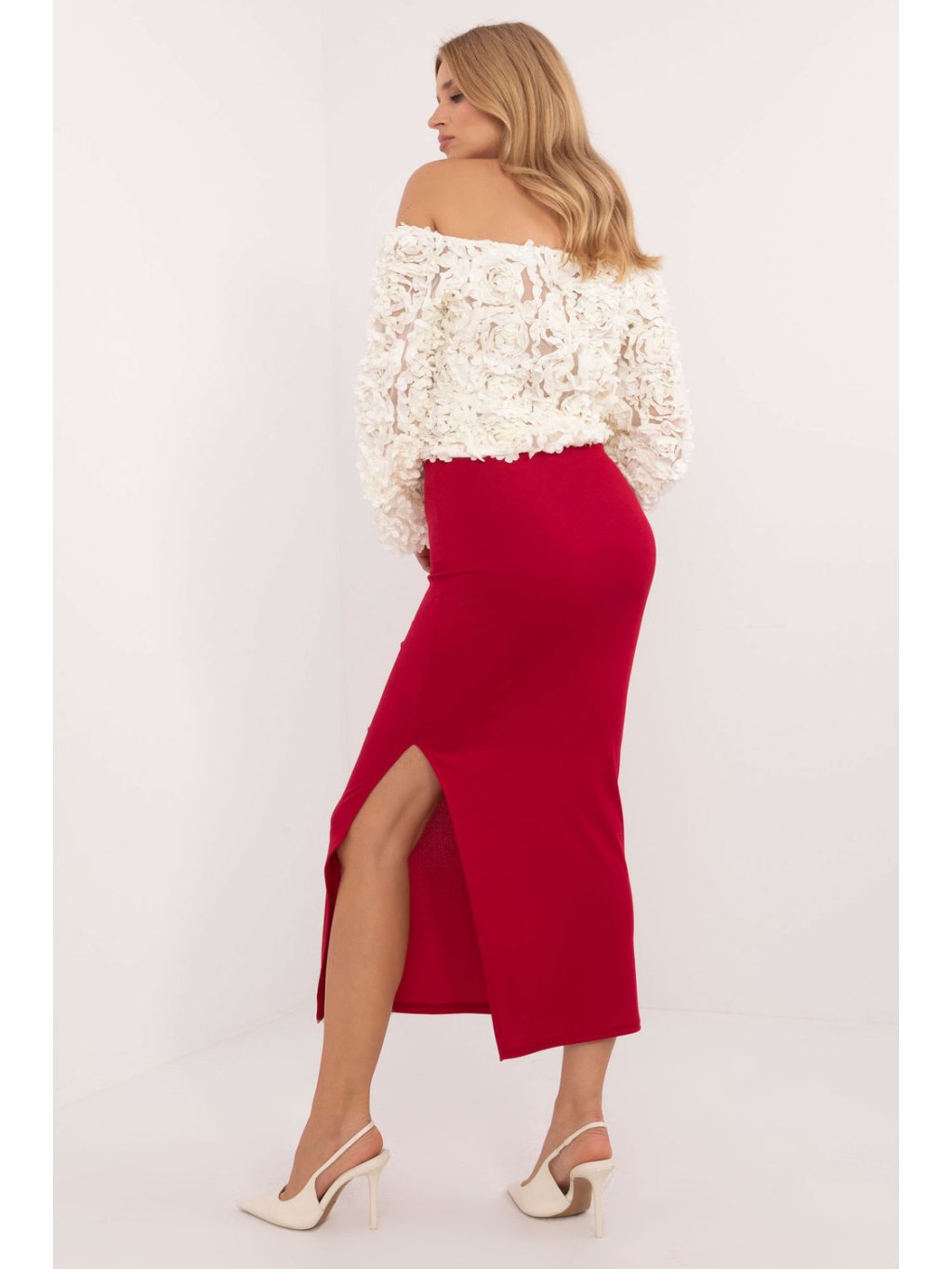 Tužková midi sukne s rozparkem, ideální na každodenní výlety i do práce, kombinující ležérní styl s elegancí. Vyrobena z pruhovaného materiálu, který je směsí polyesteru a elastanu, sukne se skvěle přizpůsobuje postavě, zdůrazňuje její tvary a zajišťuje pohodlí. Hladký vzor a absenci zapínání jí dodávají jednoduchost a minimalismus, zatímco rozpark na přední nebo boční straně dodává outfitu ženský charakter a usnadňuje pohyb. Jedná se o ideální sukni jak na každý den, tak i do práce, kombinující funkčnost s módním vzhledem.