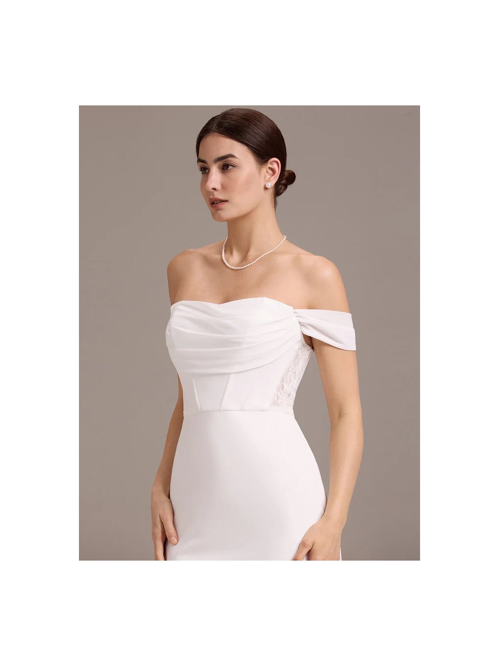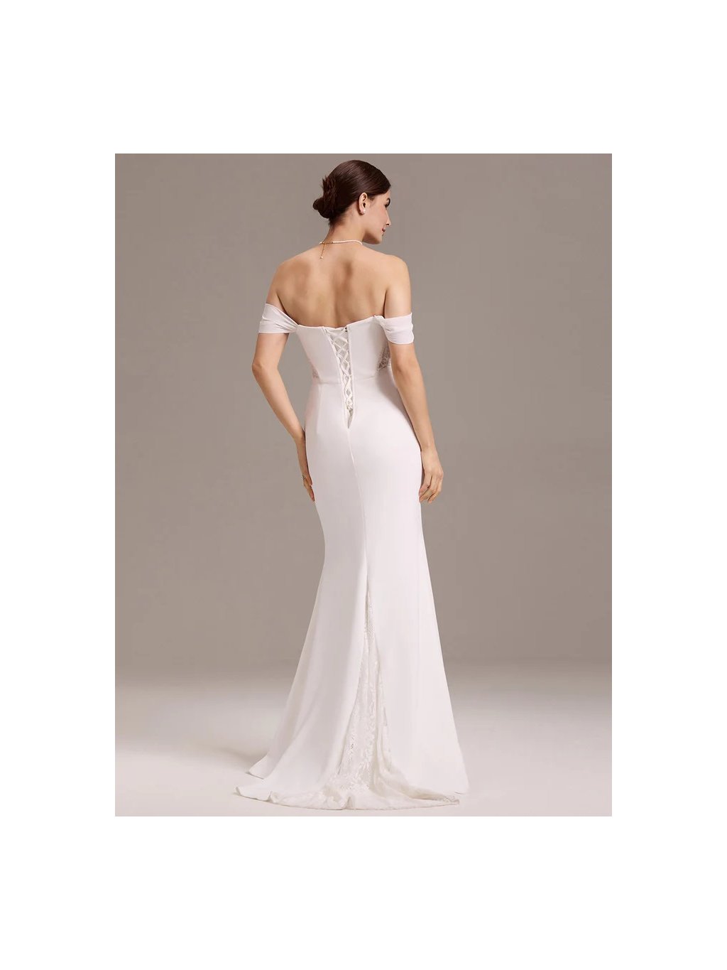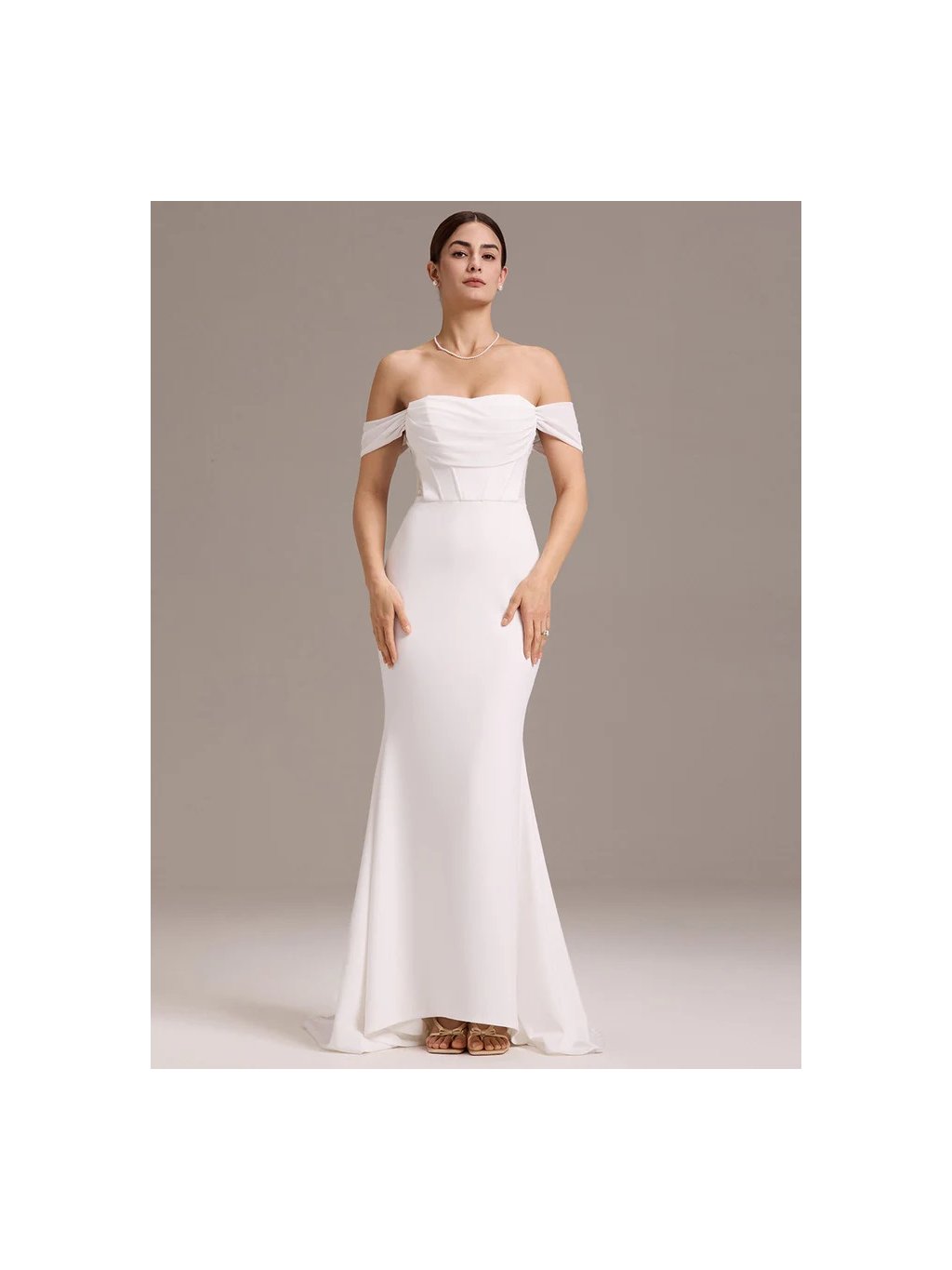 Luxusní bílé dlouhé šaty Ever Pretty. Šaty mají spadlá ramínka a tak mají holá záda. Šaty jsou slim střihu alá mořská panna.