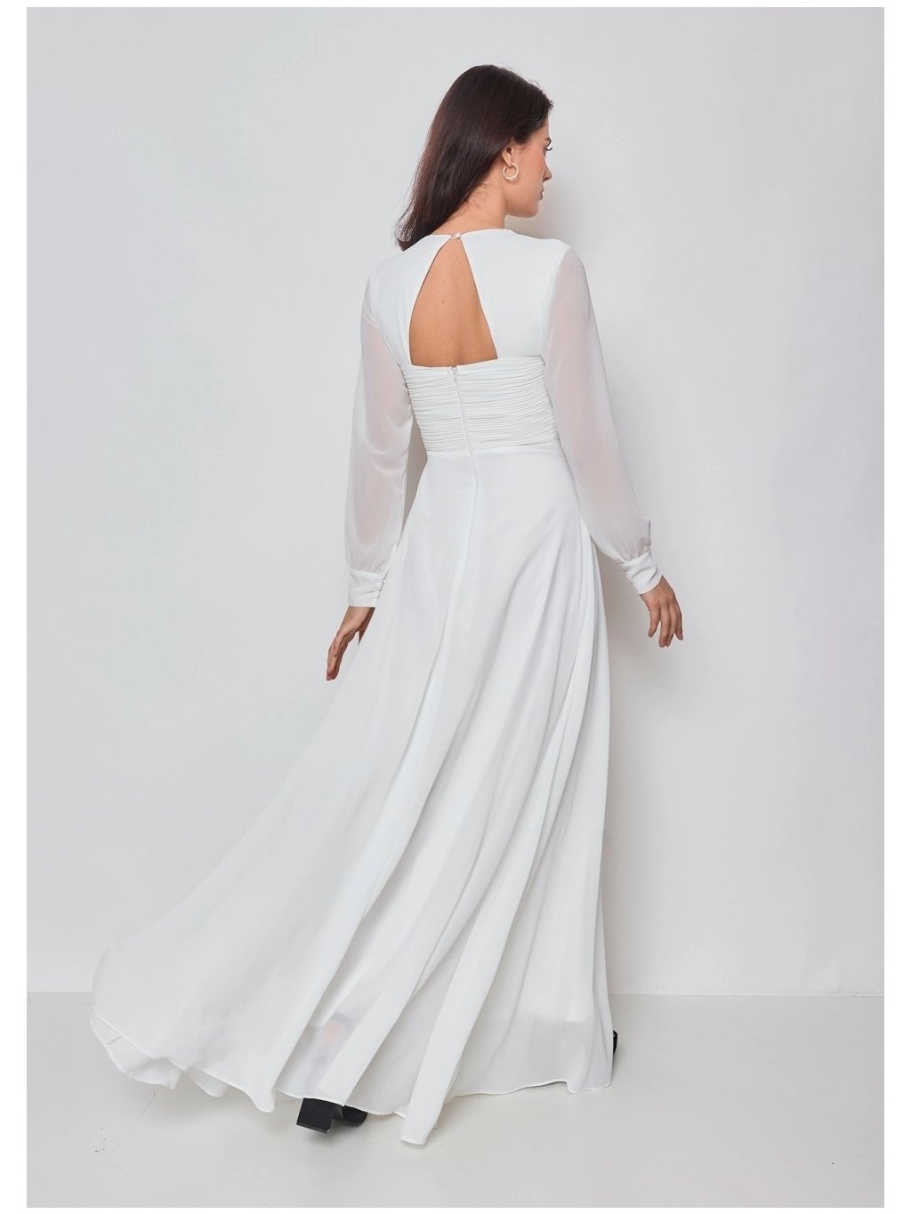 Stylové šaty společenské dlouhé s dloihým rukávem rukávem ,velkým výstřihem,a s vykrojením na zádech