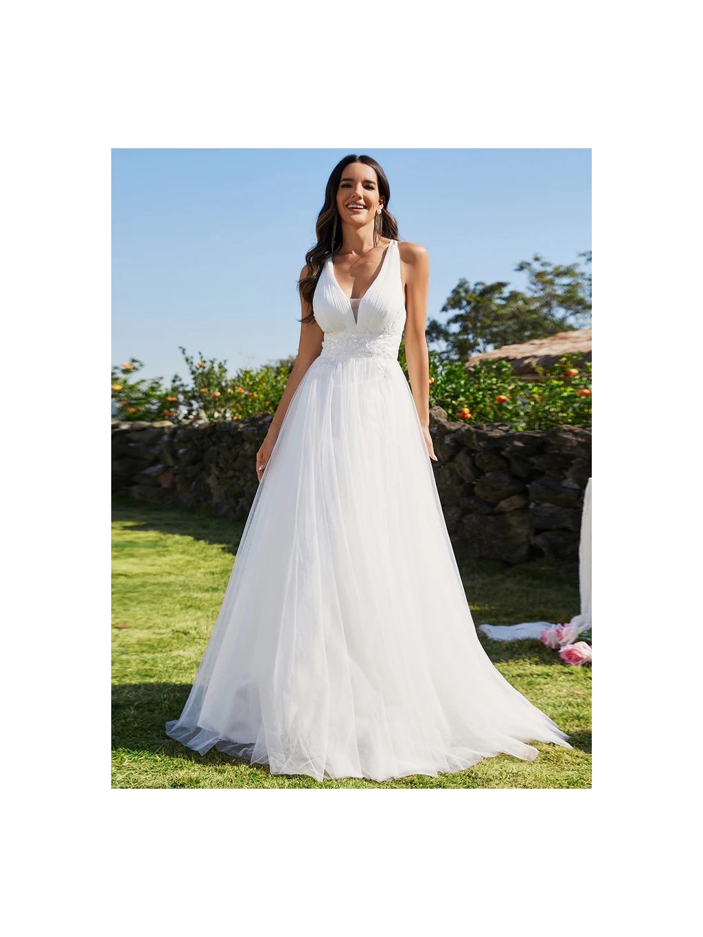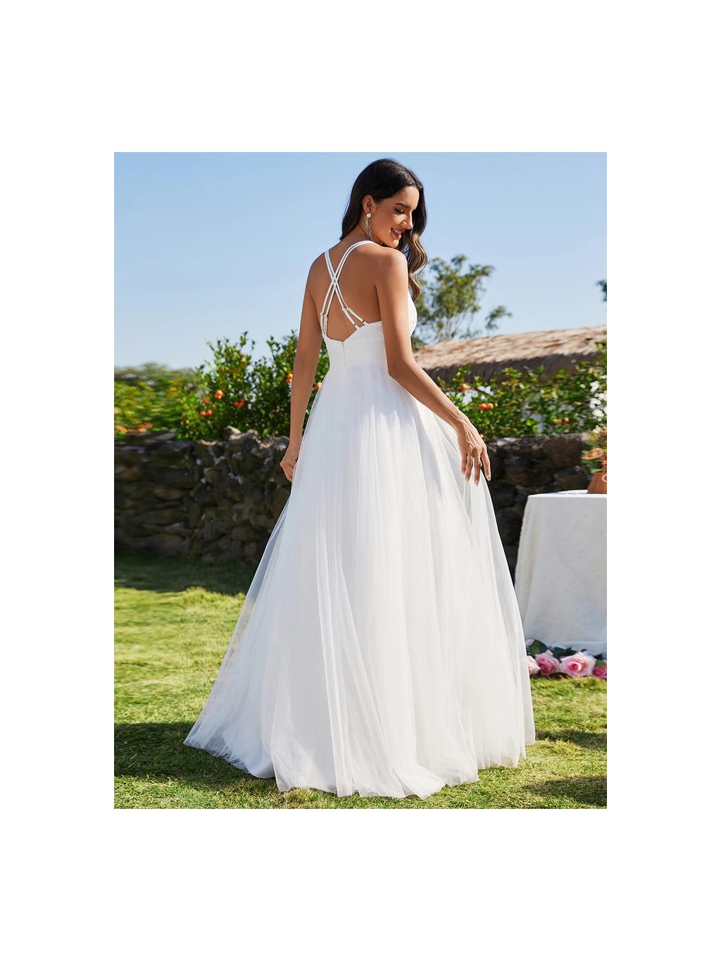 Úchvatné svatební šaty Ever Pretty. Šaty jsou s velkým výstřihem v zadu překřížená a vpředu výšivka.