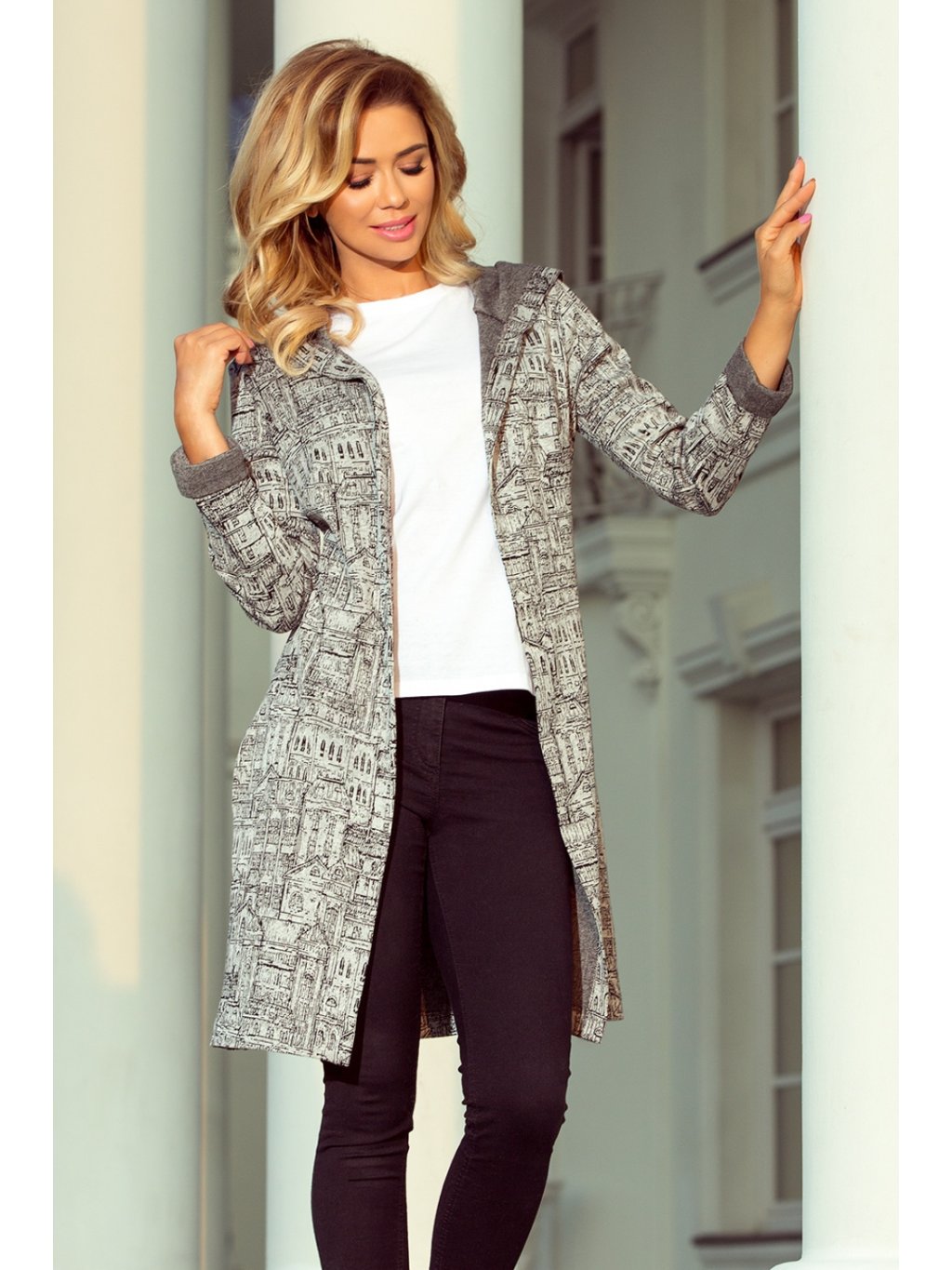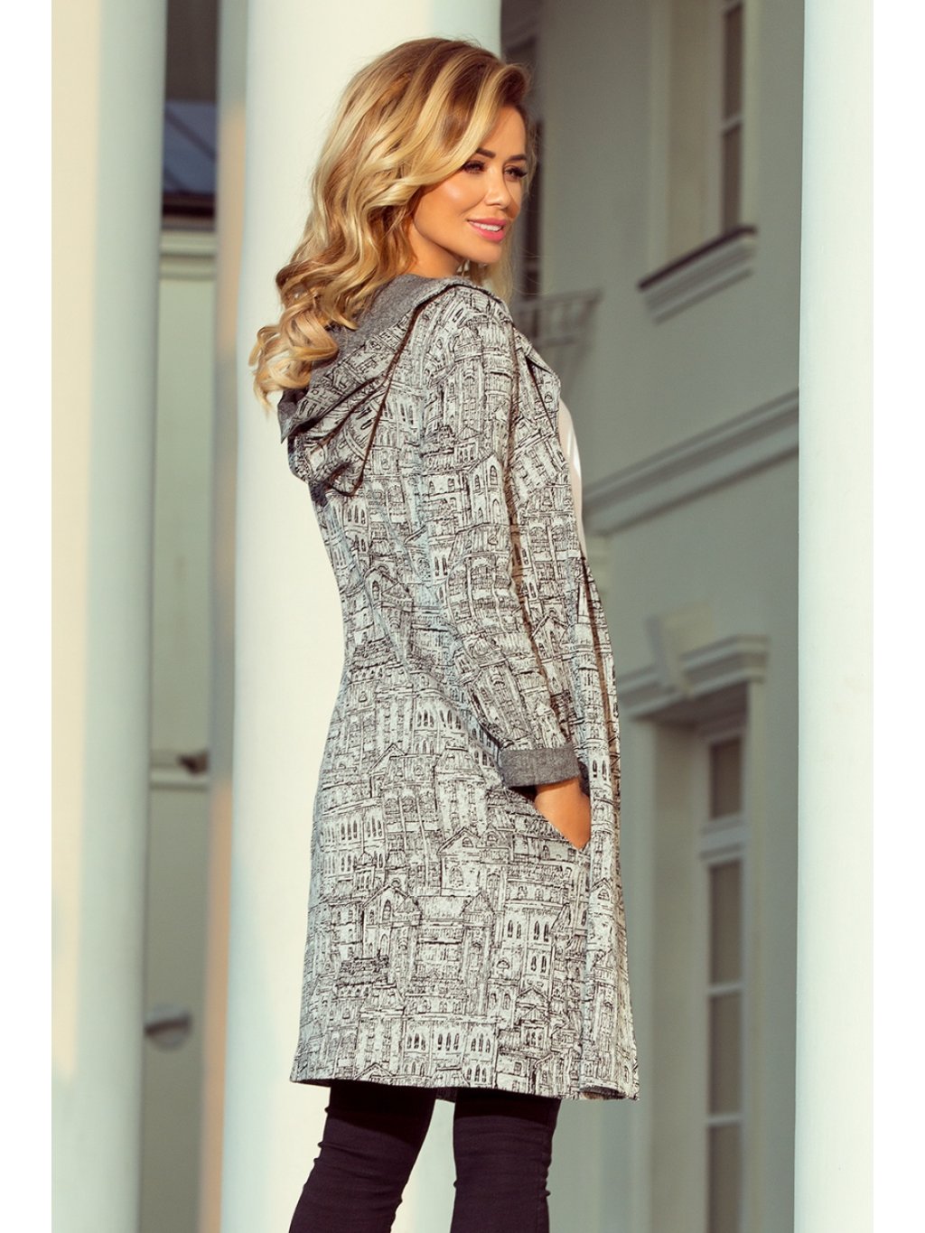 Dlouhá bunda s kapucí a kapsami, vyrobená z žakárové tkaniny - městský vzor. Značka numoco. Polský výrobek.