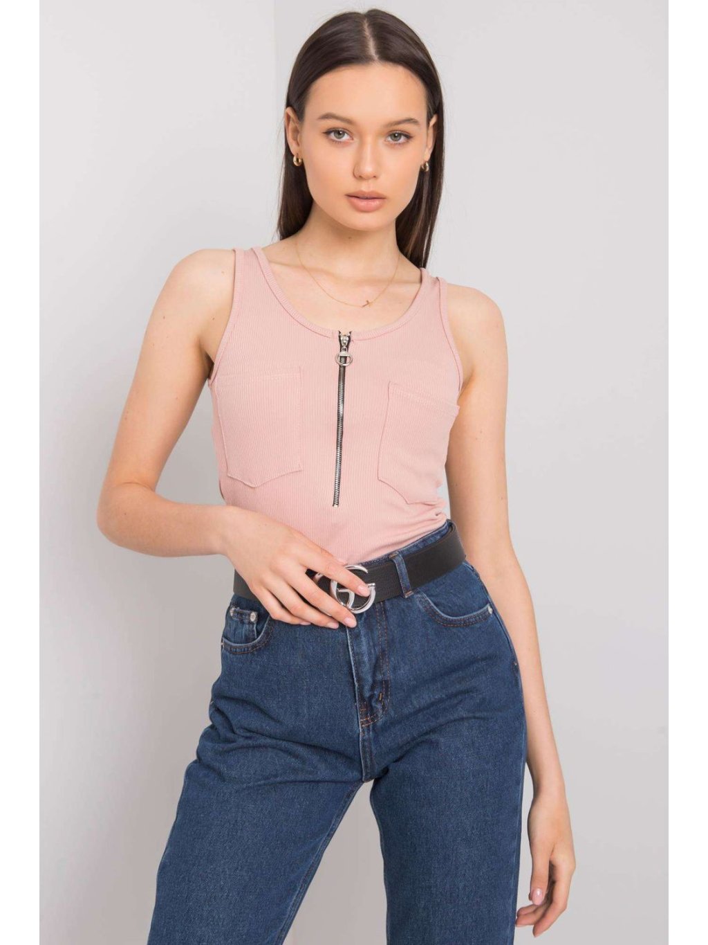Tričko s kulatým výstřihem, ramínka. Zapínání na zip vpředu a ozdobné kapsy. Ideální na léto.